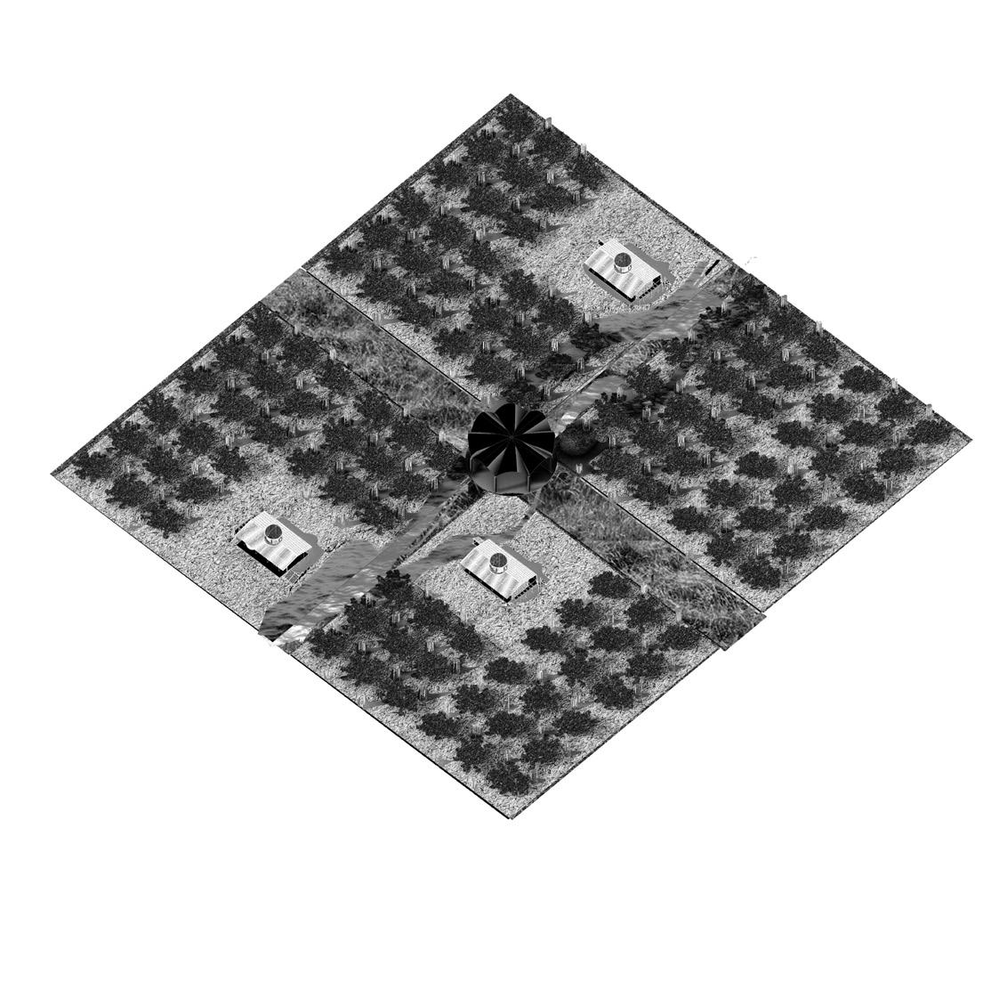 La construcción de este sistema de fincas experimentales es, al final de todo, la repetición, unión y articulación de las diferentes taxonomias que la componen en diferentes escalas, encontrando así su forma final como finca de experimentación, cuyo valor y proposito se desarrolla desde la materialidad, hasta la construcción final de diferentes fincas de experimentación.