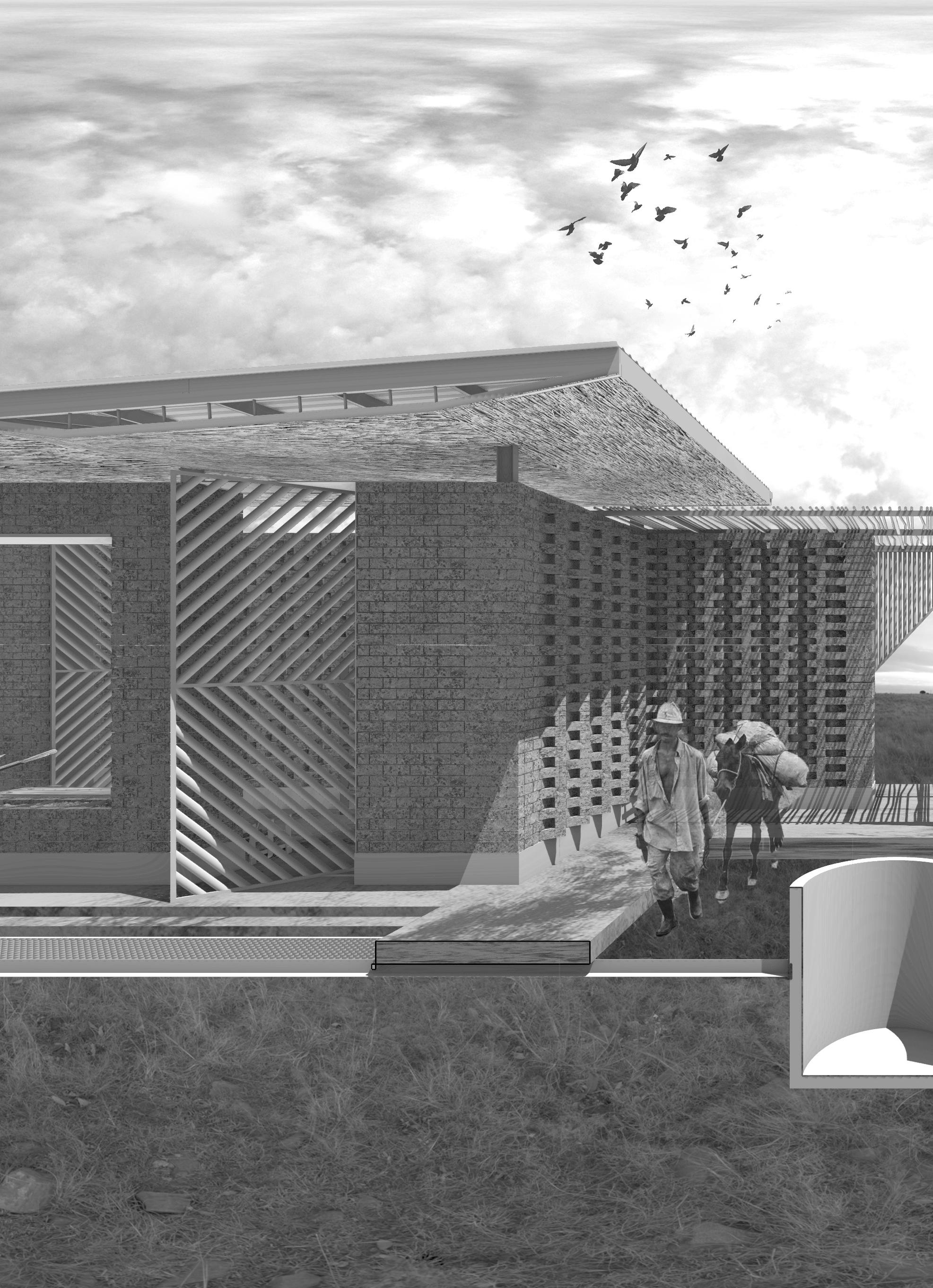 Con esto en mente, este centro articula como un vivero y parada bajo el cual se podrán encontrar agricultores y nuevos actores como turistas, inversores, etc. Para esto el centro desarrolla en su suelo un bebedero para el ganado,