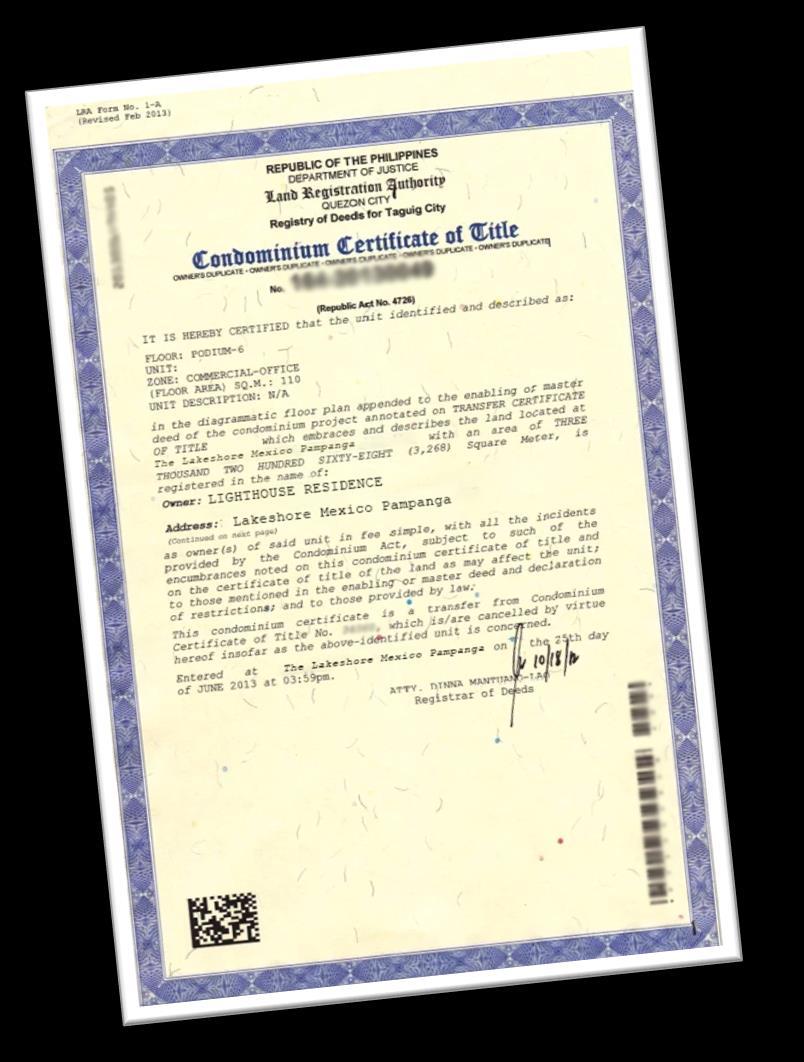 Other condo units DO NOT HAVE COMMON SHARE TO OUR HOSPITAL!