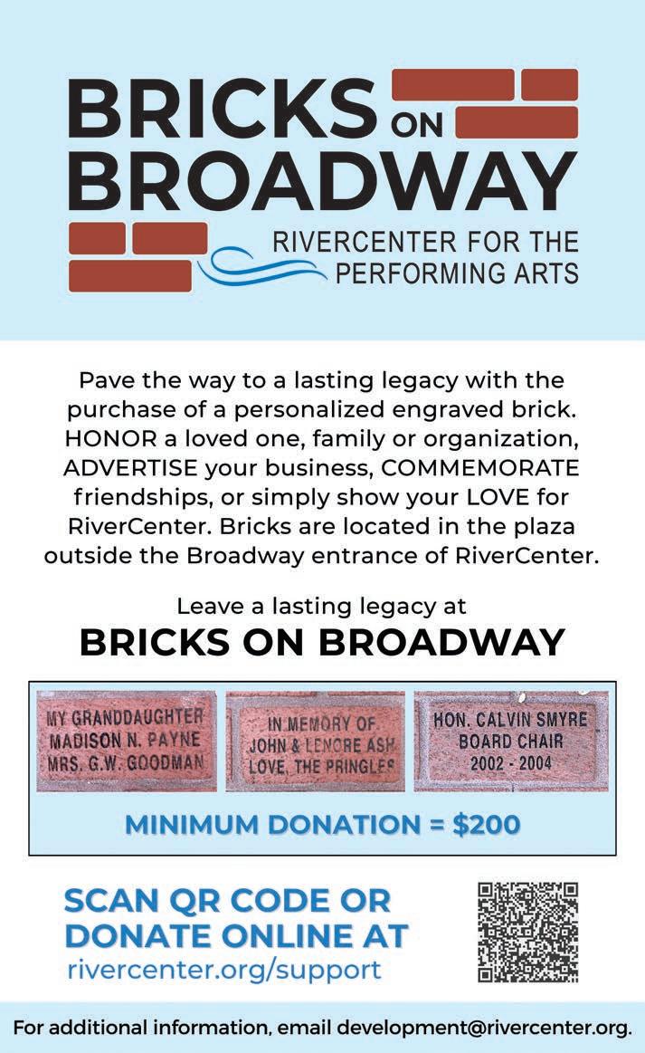 RiverCenter for the Performing Arts would not be possible without the help and generosity of our wonderful community. We are so thankful for all of the donors and members who have helped us grow and bring amazing talent to our region for over 20 years!