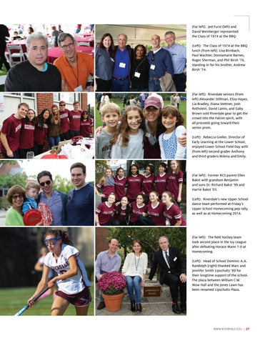 Class Correspondent tim morehouse was at Homecoming/ Reunion 2014 to celebrate longtime Riverdale fencing coach martin Schneider’s election into the U.S. Fencing’s Hall of Fame (see photo on page 25). For more on Homecoming/Reunion 2014, see pages 24-30.
