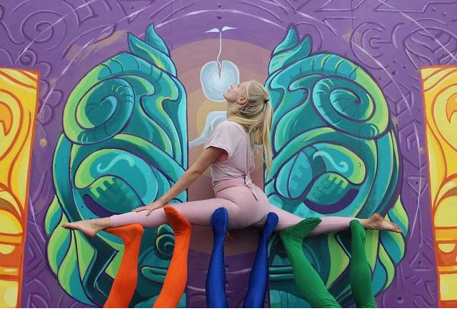 Our journey started nine years ago when we first adopted the nomadic minimalist lifestyle, traveling across the globe to participate in music and art festivals, carrying with us only two backpacks and two small suitcases. We began by painting murals in the Caribbean and continued showcasing our work at festivals in Europe and South America, leaving trails of turquoise and purple behind us. Each destination brings fresh ideas and challenges. Painting in extreme weather or carrying heavy buckets of paint in the rain is all worth it for the final piece of art sealed in a photo.