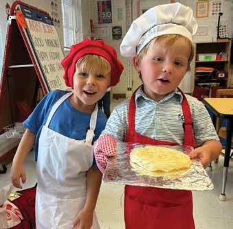 Each year, our PreK students take the stage to perform short musicals inspired by well-known Bible stories. But these performances are more than angelic voices and welldelivered lines. As students rehearse their lines and learn the songs, they’re also building confidence, sharpening their communication skills, and discovering the joy of collaboration. But to understand the full scope of their learning, you have to look beyond the performers…to the backdrops. As part of an interdisciplinary approach to the fine arts curriculum, PreK students create the artwork that serves as the set for their show.