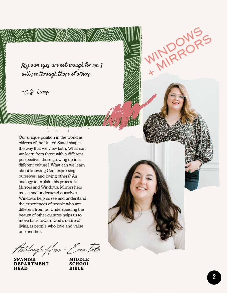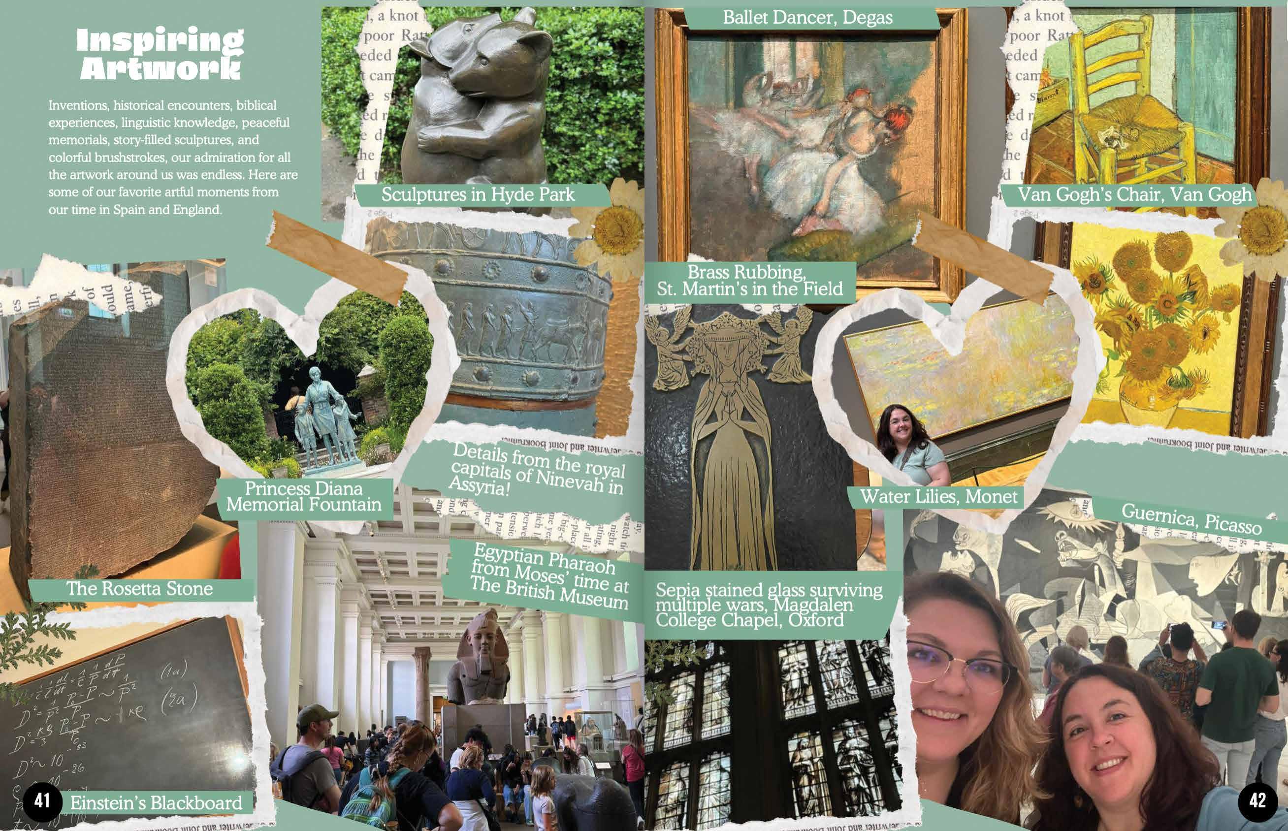 Recipients of the 2023 Carrabba Family Grant, Ashleigh Hess, Spanish Department Head, and Erin Tate, Middle School Bible Teacher, traveled to England and Spain in summer 2024 to explore the intersection of language and culture through the lens of God’s perfect creation. These excerpts from their Windows and Mirrors publication, an extensive diary of the trip, highlight their favorite experiences and most important takeaways from their excursion.