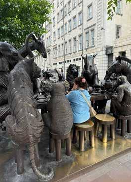 Statues of beloved writers and characters line the streets, ready to interact with pedestrians From Paddington, whose stories speak of lending a hand to those in faraway lands, to a banquet table prepared for the world’s most endangered species hoping to be protected.
