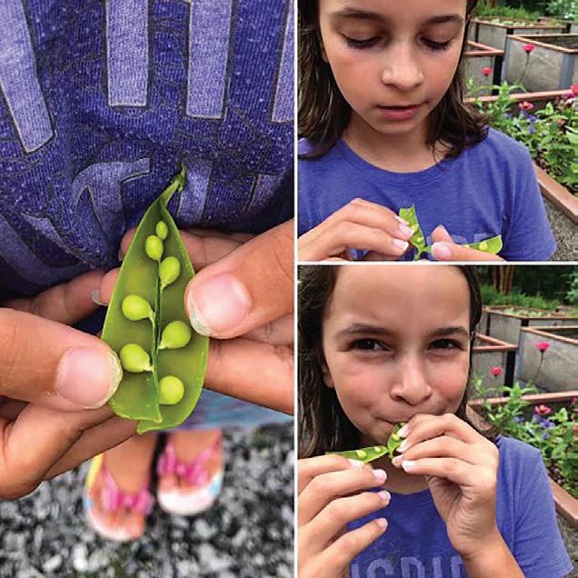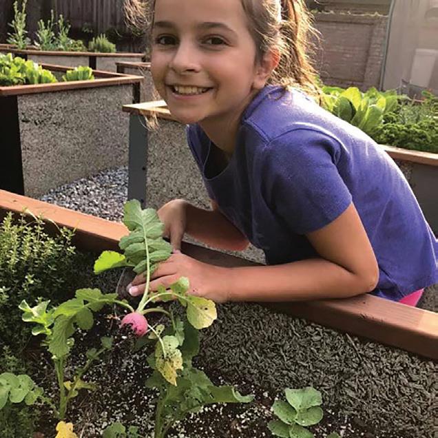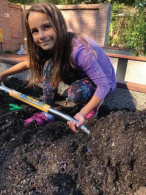 Lois' Daughter Zoe in OCCG, digging, tending radishes, peas and lettuce