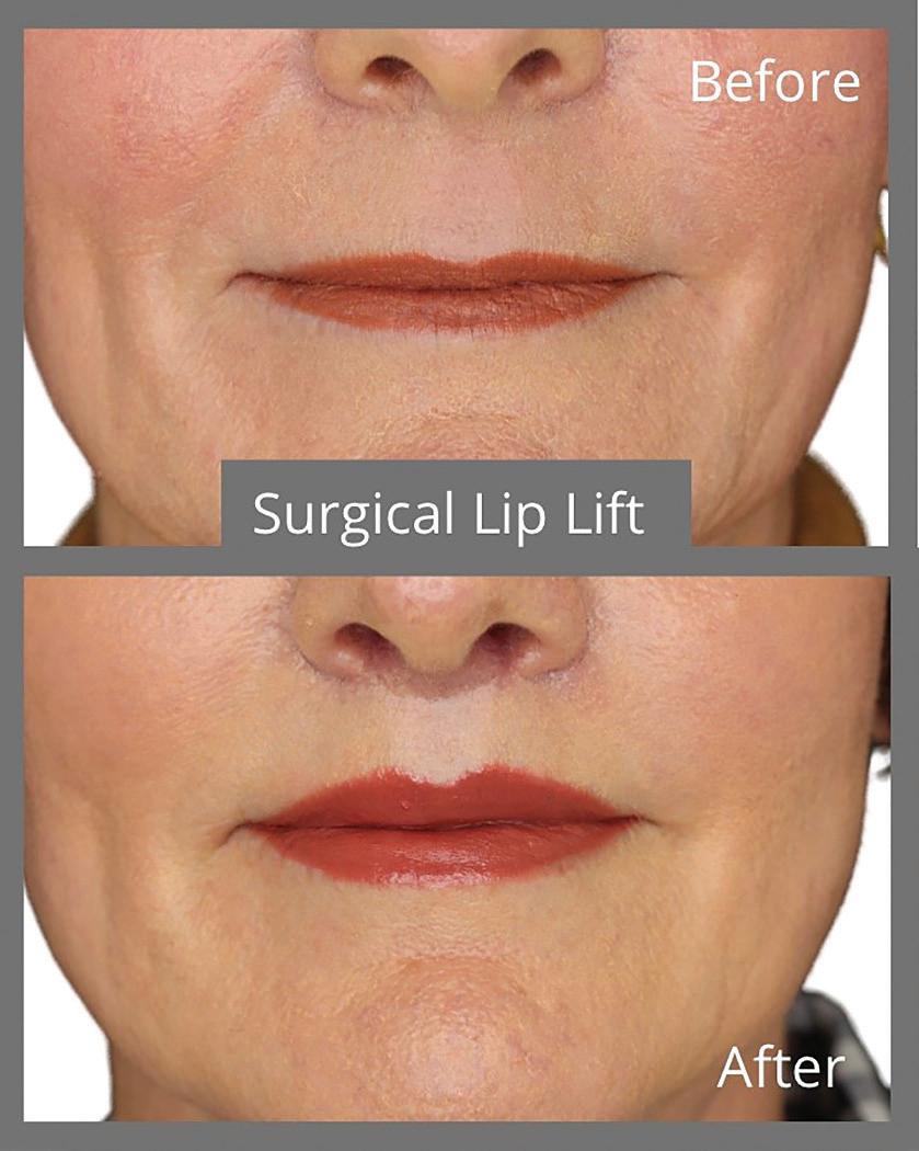 For those patients interested in a more durable alternative to filler and Botox, you may consider undergoing a surgical “lip lift” wherein a small amount of skin under your nose is removed to decrease the length of your upper lip skin. This quick, in-office procedure is performed under local anesthesia (numbing injections) and represents a great way to create a more youthful but natural appearance to the upper lip, oftentimes negating the need for future lip filler. Moreover, the surgical lip lift has minimal downtime (1 week), high safety profile, and long-lasting results.
