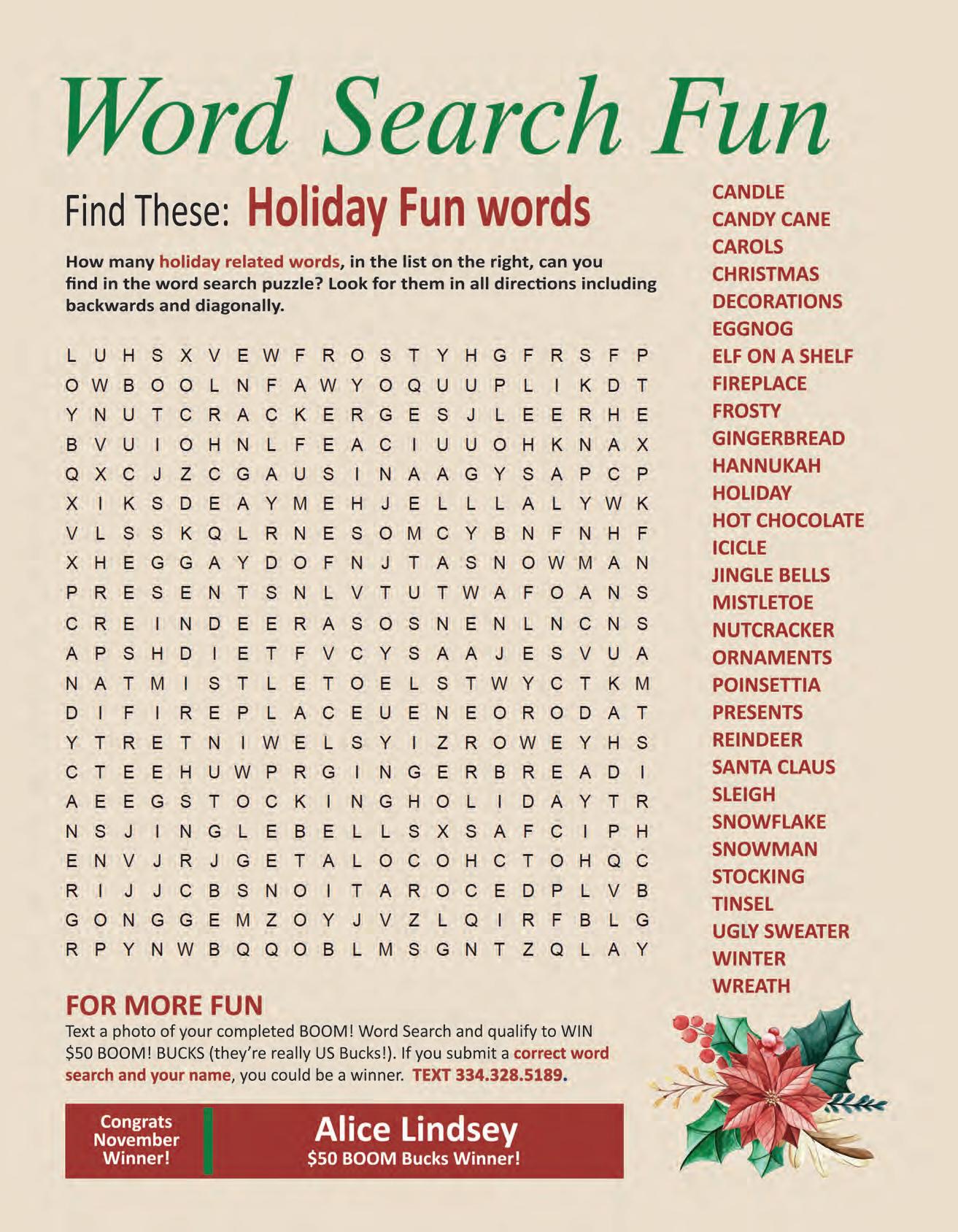 That’s the kind of giving we celebrate in this issue of Boom! Not the frantic shopping cart kind, but the kind that brings people closer—whether across generations, across dinner tables, or across seasons of life.
