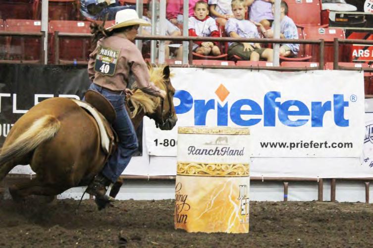Jessica Wright of Rapid City rides to a 14.397 finish in high school barrel racing placing 10th.