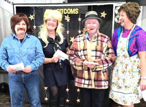 were portrayed by the rinks after supper with some teams singing their theme songs, some singing “something else”, skits, a few rounds of sitcom trivia and “Get Smart” even put on a mini episode of their show (complete with the cone of silence and a shoe phone). A few rounds of “cornhole”, raffle baskets and silent auction rounded out the entertainment. It was truly a hilarious, wonderful evening! read more about the ladies bonspiel on page 2...