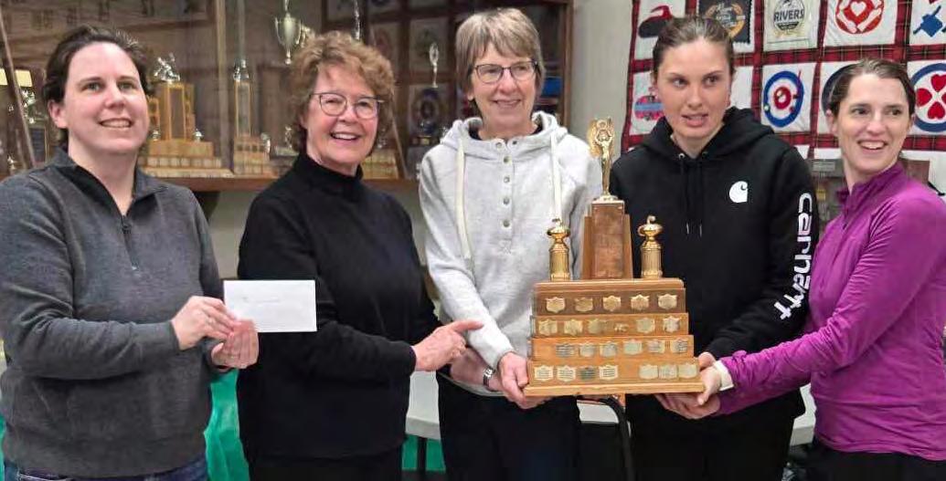 At the conclusion of three days of very close competition, t he A event w inners were Iv y Heapy’s H amiota team of t hird- Sheila G regory, second-Kassidy Heapy/ Linda W ilson a nd lead- C lair Tolton. T hey defeated the McKay foursome of A lexander/Rivers w ith L aurie Campion-skip; L inda McKay-third; S am K olesarsecond a nd A shley H ammond-lead on t he l ast rock of the 8th end. Couldn’t have been closer.
