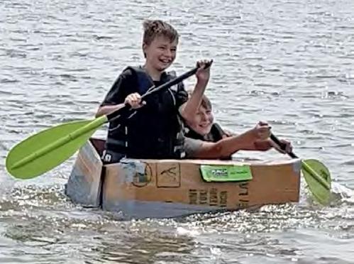 To qualify, the boats must be made of only cardboard and tape. Most of the boats made it over the finish lane as they floated back to shore but a few sank. Fortunately for the boaters whose crafts sank, the water at Rapid City beach was shallow on July 12 and it was warm too.