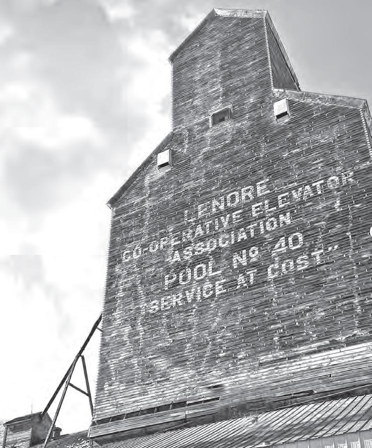 The grain elevator in Lenore, Manitoba is a former Manitoba Pool elevator. This elevator was likely constructed in the late 1920s and was at the end of the CP Lenore subdivision.