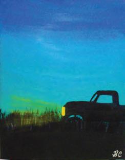 Youth ages 11 – 13 two winners. Brookelynn Chipelski of Foxwarren for her piece “Truck in Field” and Raelynn McNair of Binscarth for her piece “Looking for the Light”. Youth ages 14 – 19 two winners. Charlie McGowan of Brandon for his untitled piece and Ava Blair of Killarney for her piece “Mystery Man”. Best in Show was sponsored by Gerry Oliver. This was presented to the most outstanding work in the Juried show as selected by the jurors. The winner was Glenda Cairns Poirier of Sinclair with her piece “Mid-Century Mule”. The theme this year for the theme category was ‘Chasing the Light’. There were 38 entries in this category alone. This category was sponsored by Lasting Image. The most outstanding entry in this theme was Joel Desjardins of Virden for his piece “On a Bike Ride”. The last category was the People’s Choice also sponsored by Lasting Image. The crowd had an opportunity to select their favourite piece and submit a secret ballot during the show on Sunday. Kerri Wilson of Hamiota with her piece “Imagine” gathered the most votes.