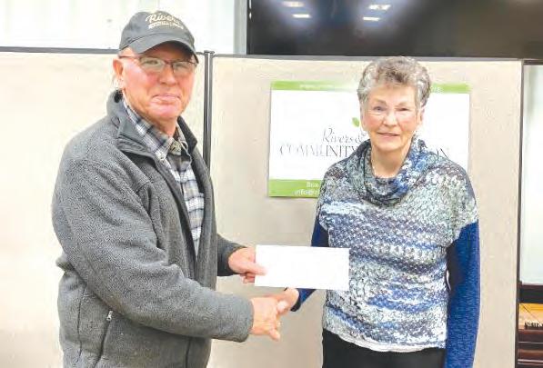 -Rivers Curling Club President Dave Falkevitch and Executive representative Cheryl Champion received $2,000 from RACF Director Stacey Stott to go towards the purchase of printed mesh sheeting for the curling surface.
