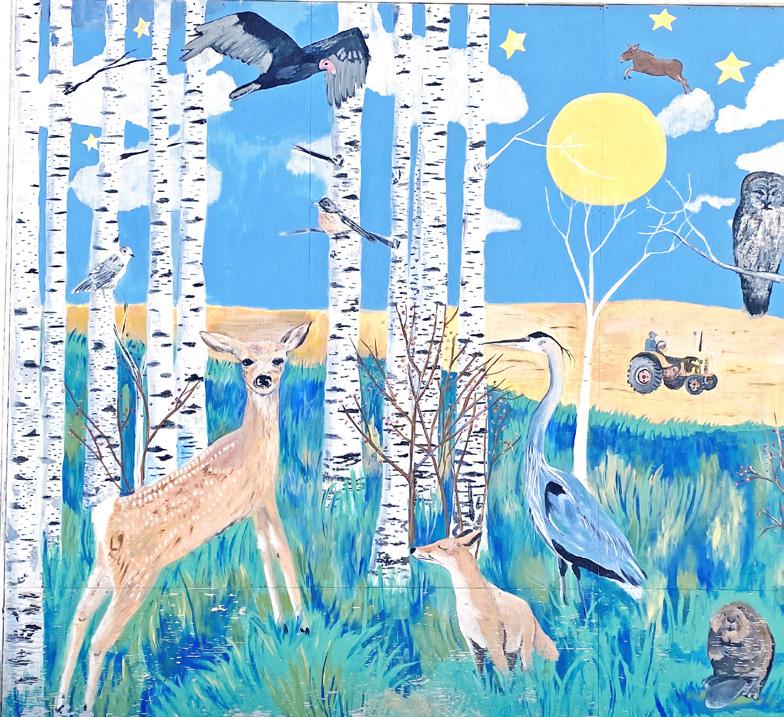 The deer mural is a call back to farming in the 80s when machinery wasn’t so big and natural areas were more abundant.