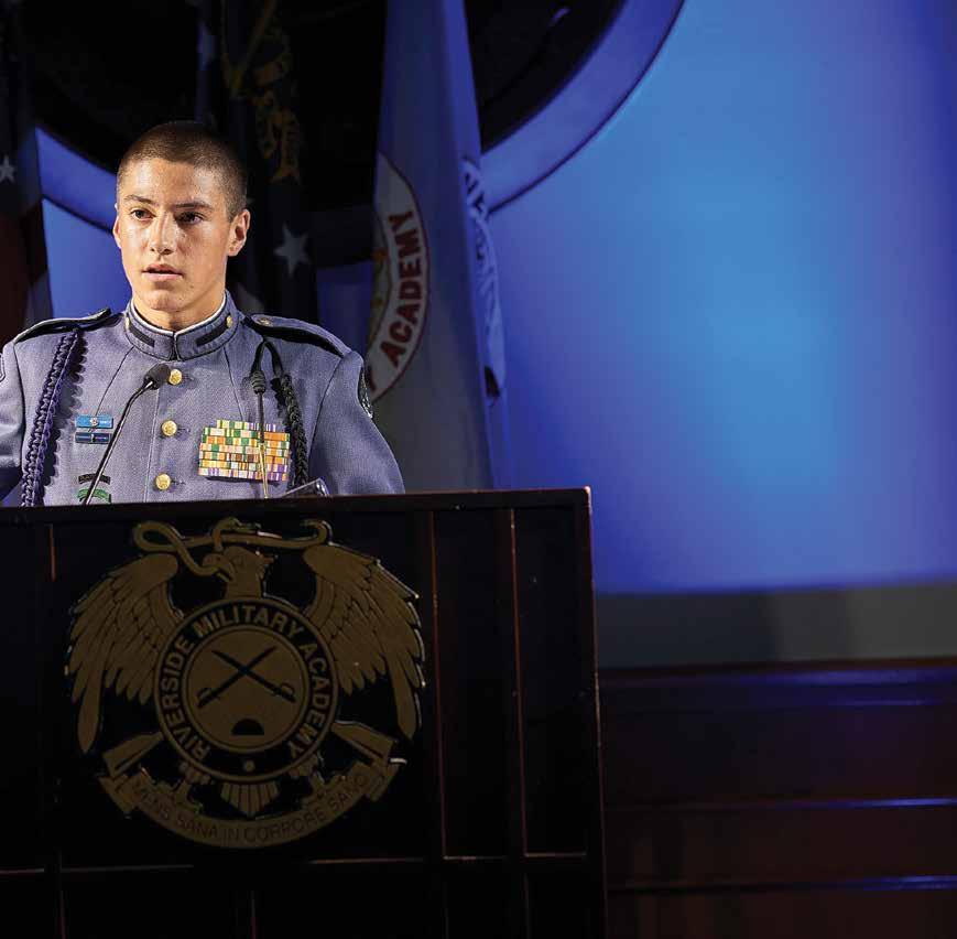 Caleb Baker, '25, was not your typical eight-year-old. At an early age, Baker had high aspirations to attend a service academy. He began researching different schools and came across information about Riverside. Baker begged his parents to go, and when he turned twelve, the family decided they would allow him to begin his studies at Riverside as a day student.