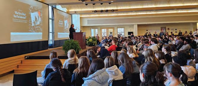 AS A COMMUNITY, we witnessed a celestial phenomenon on April 8 when a solar eclipse traversed Mexico, the United States, and Canada. The anticipation of experiencing near totality was palpable as students, professional-community members, and parents gathered on the Lank Quadrangle to experience this rare event together. As happens so often on the Rivers campus, it was a moment of true connection. In addition to marveling at the near disappearance of the sun, I enjoyed looking into the faces around me for a shared “Wow!” and collective sense of wonder. I was reminded of the power of awe, which University of California, Berkeley professor Dacher Keltner defines as “the feeling of being in the presence of something vast that transcends your current understanding of the world.” Keltner’s research links experiences of awe to increased life satisfaction and a deepened sense of connection with others. Standing in the muted light and dipping temperatures that afternoon amid fellow Rivers community members, I couldn’t agree more.