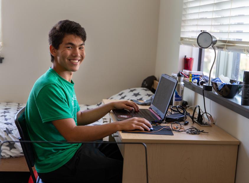 Room furniture for each student includes twin bed, mattress, desk, clothes bureau, end table
