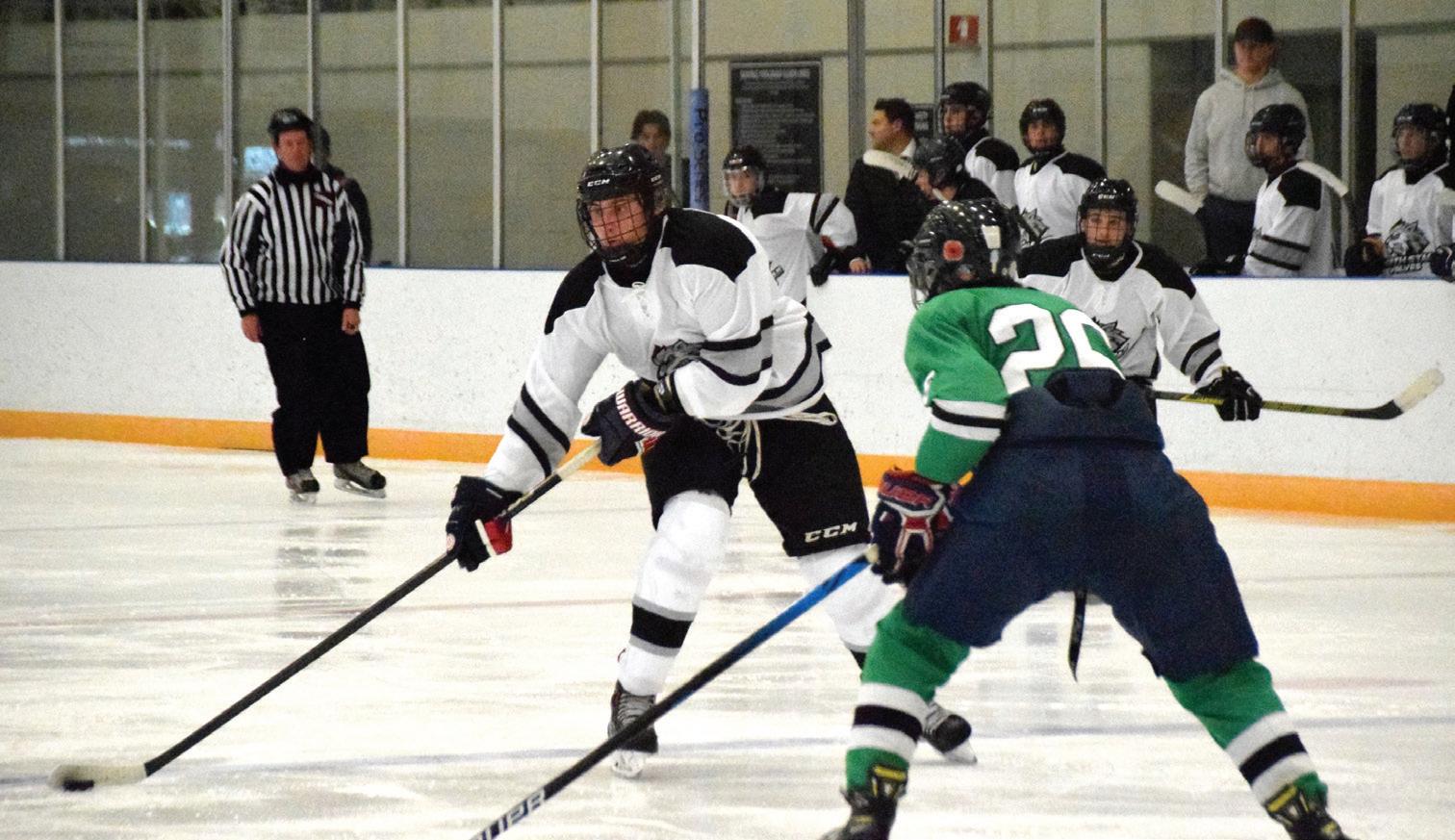 North Star’s Declan McGrath (white jersey) enters the Lajeunesse zone last Thursday afternoon. The Wolves are 1-0 after a 7-3 win. RTT Photo by Ron Giofu