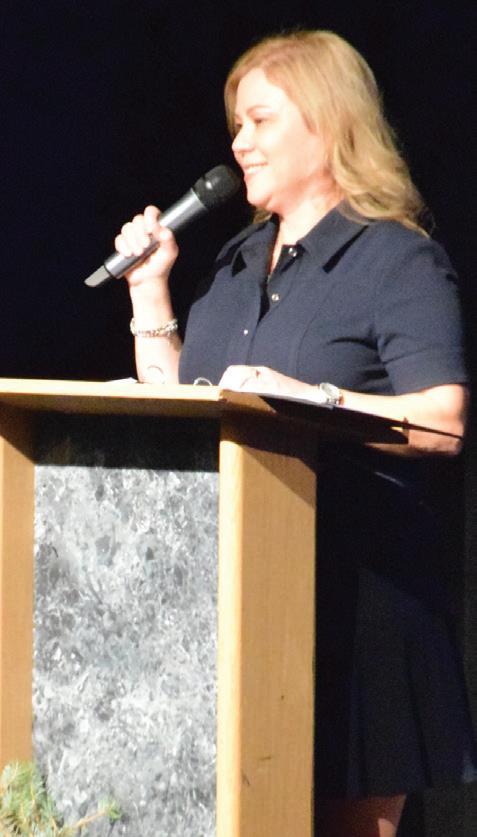 St. Thomas of Villanova prin cipal Laura Beltran smiles as she speaks to the students and parents/guardians.