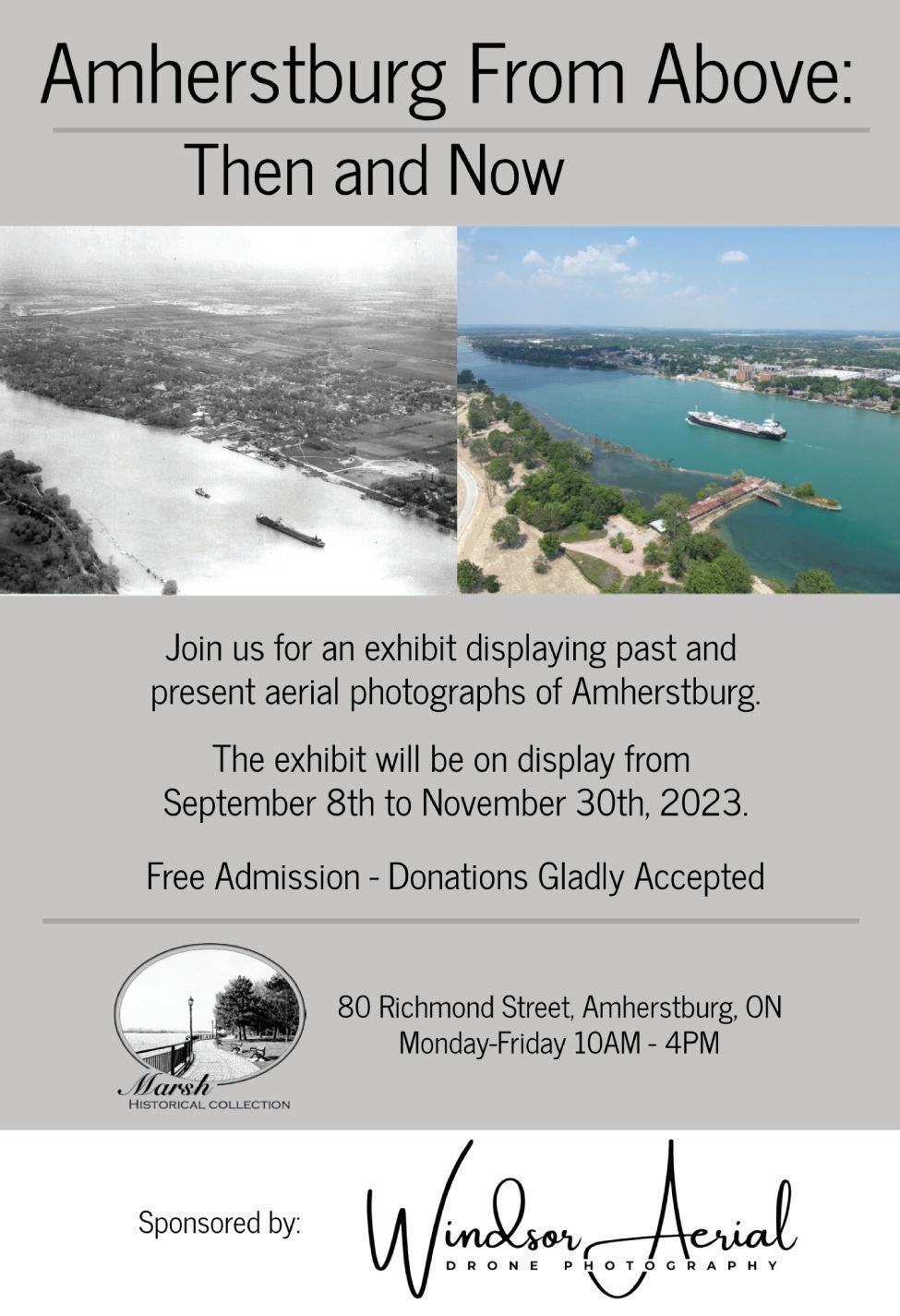 ORAL HISTORY PROJECT - Presented by the Marsh Historical Collection, 80 Richmond St. First round of interviews being conducted this summer. Contact the Marsh Historical Collection for more info, 519-736-9191 or research@ marshcollection.org. Help preserve the stories, histories and legacies of Amherstburg!