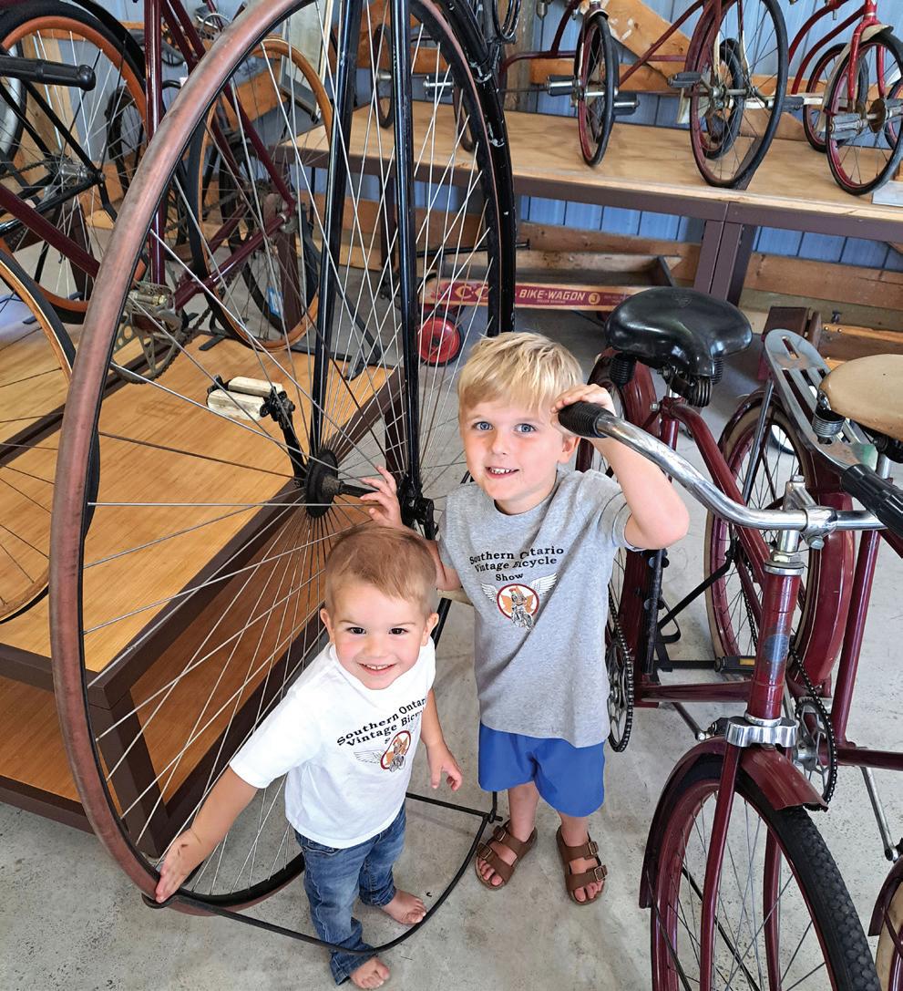 (Left) Emmett Parker, left; and Luke Wasylowich check out some of the vintage bikes while Rick Wolfe and his 1885 Columbia Roadster Trike were also part of Sunday’s Southern Ontario Vintage Bicycle show