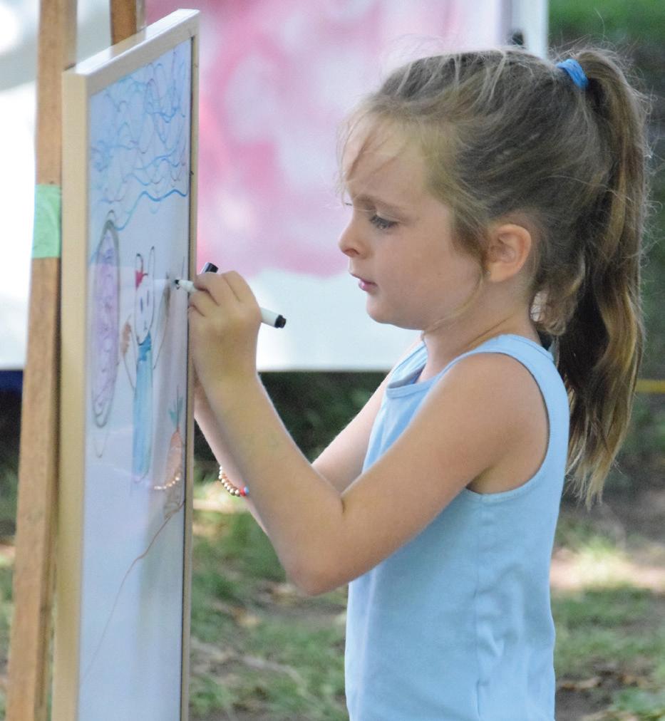Drew Mingay tries her hand at the “L’il Artists’ Workshop.”