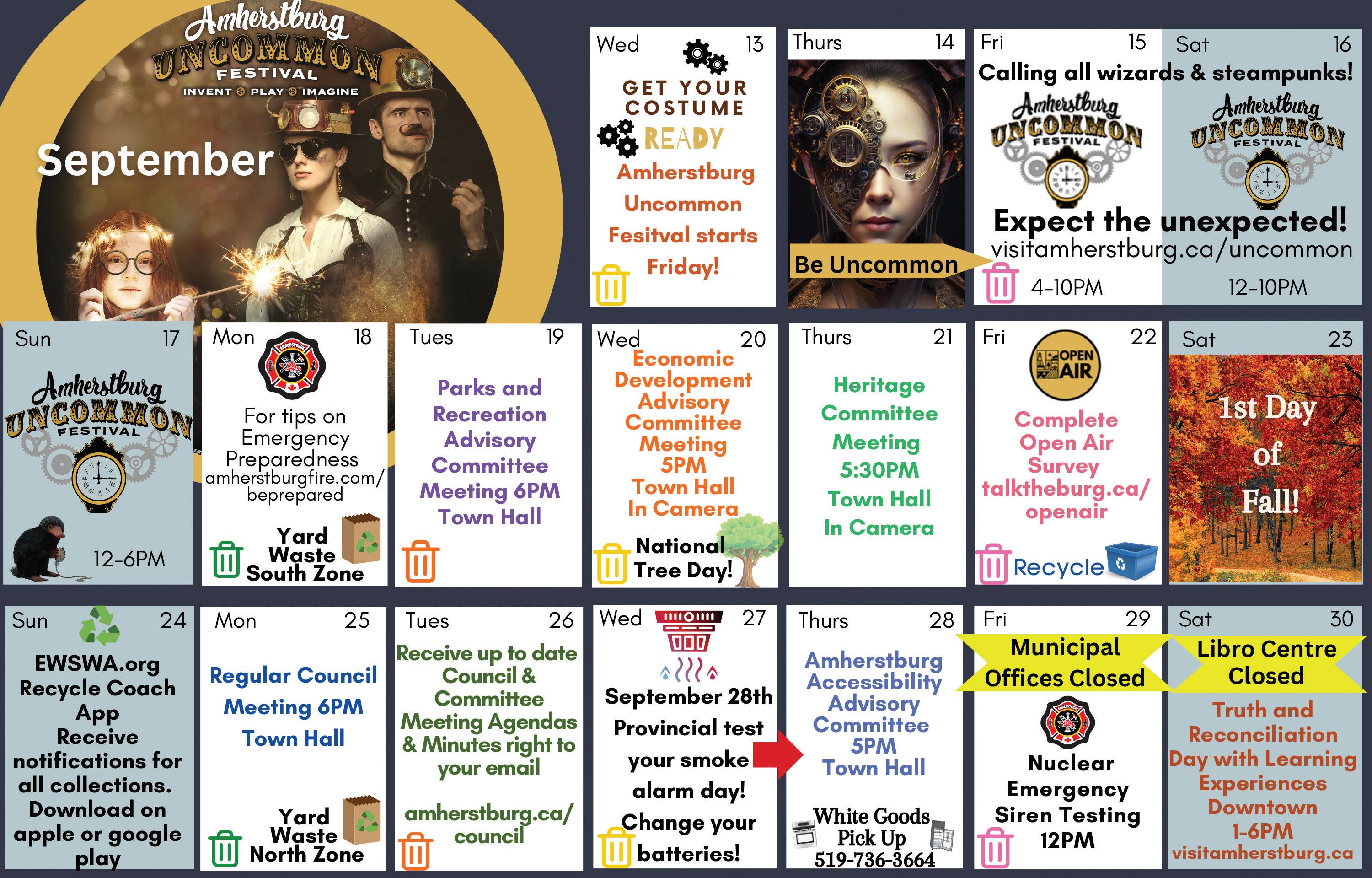 www.rivertowntimes.com SEPTEMBER 15-17 visitamherstburg.ca/uncommon FRI: 4p-10p · SAT: 12p-10p · SUN: 12p-6p Step into a world where steampunk meets magic! Dress up in your favorite wizardry or Victorian cosplay costume and join us for the most Uncommon weekend of fun. Prizes for best costume and butterbeer is back! Follow us on social media for more: @visitamherstburg DOWNTOWN AMHERSTBURG Join us on social! A m h e r s t b u r g T o w n H a l l A b u r g T o w n H a l l 519-736-0012 • www.amherstburg.ca 271 Sandwich St. South, Amherstburg, Ontario N9V 2A5