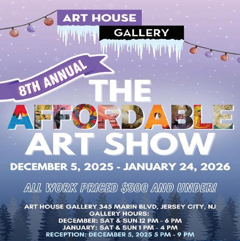 Executive Artistic Director Meredith Burns adds “This is a cashand-carry show, so you really need to get here as soon as you can! The Affordable Art Show has become a beloved Jersey City tradition and is a wonderful way to find unique gifts for your loved ones while supporting local artists. With hundreds of pieces priced under $500, there’s something for everyone — whether you’re hunting for a special holiday gift or adding to your own collection.”