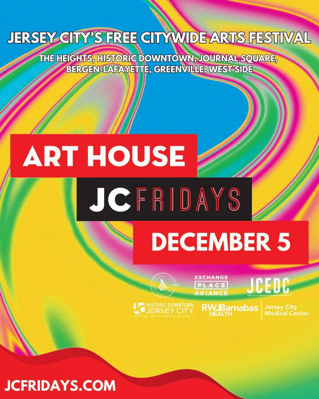 Art House Productions (Executive Artistic Director, Meredith Burns; Director of JC Fridays, Sunjay Venkatraman) is thrilled to announce the lineup for the final JC Fridays of 2025, taking place on Friday, December 5th. Jersey City’s premier quarterly arts festival, which is free and open to the public, will feature a diverse array of events, including visual art exhibitions, music performances, studio tours, and more, hosted at local businesses, galleries, studios, and arts organizations. Attendees are encouraged to explore multiple venues to discover new art and engage with the local arts scene. Complete event listings and an interactive map are available at www.jcfridays.com.