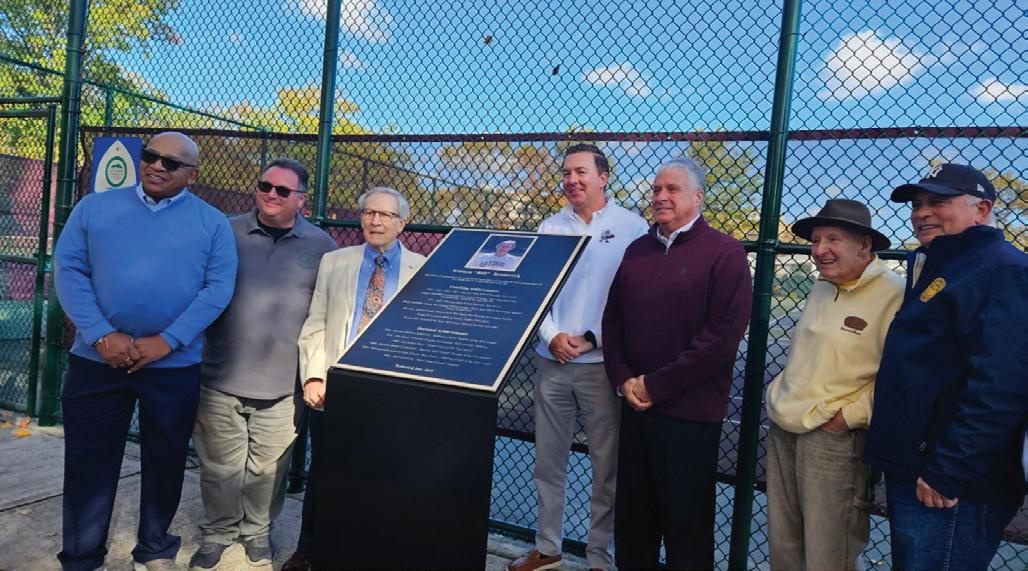 On October 24, the County of Hudson held a ceremony at GreggBayonne County Park to dedicate the park’s tennis courts to Bill Broderick. A member of the Hudson County Sports Hall of Fame, Broderick served as a tennis coach for both boys’ and girls’ high school teams and was a physical education teacher for the Bayonne Board of Education. He initiated the girls’ high school tennis program in Bayonne and led them to four Hudson County Championships, with an overall record of 20150.He led boys’ tennis teams to twenty-one county championships