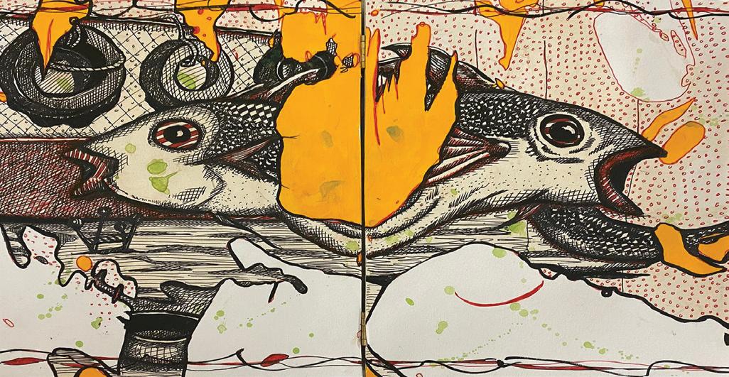 Stephanie DeManuelle’s semi-abstract River Life paintings have their origins in nature, shapes found in roots, driftwood or shells.