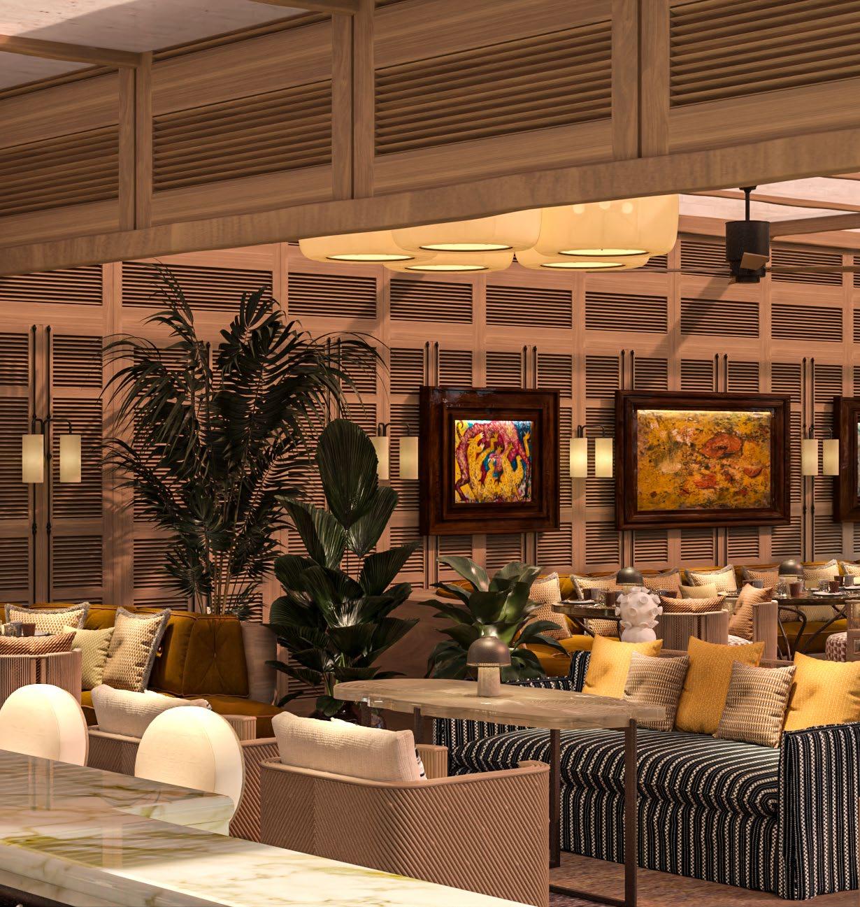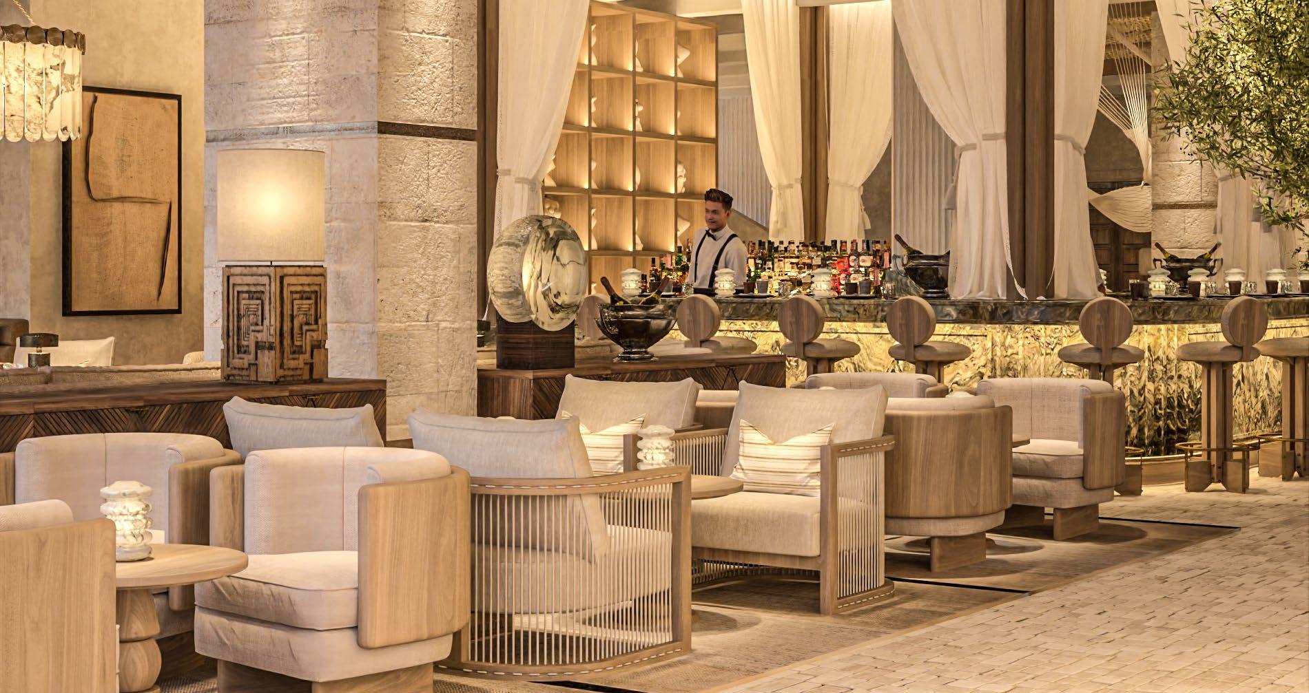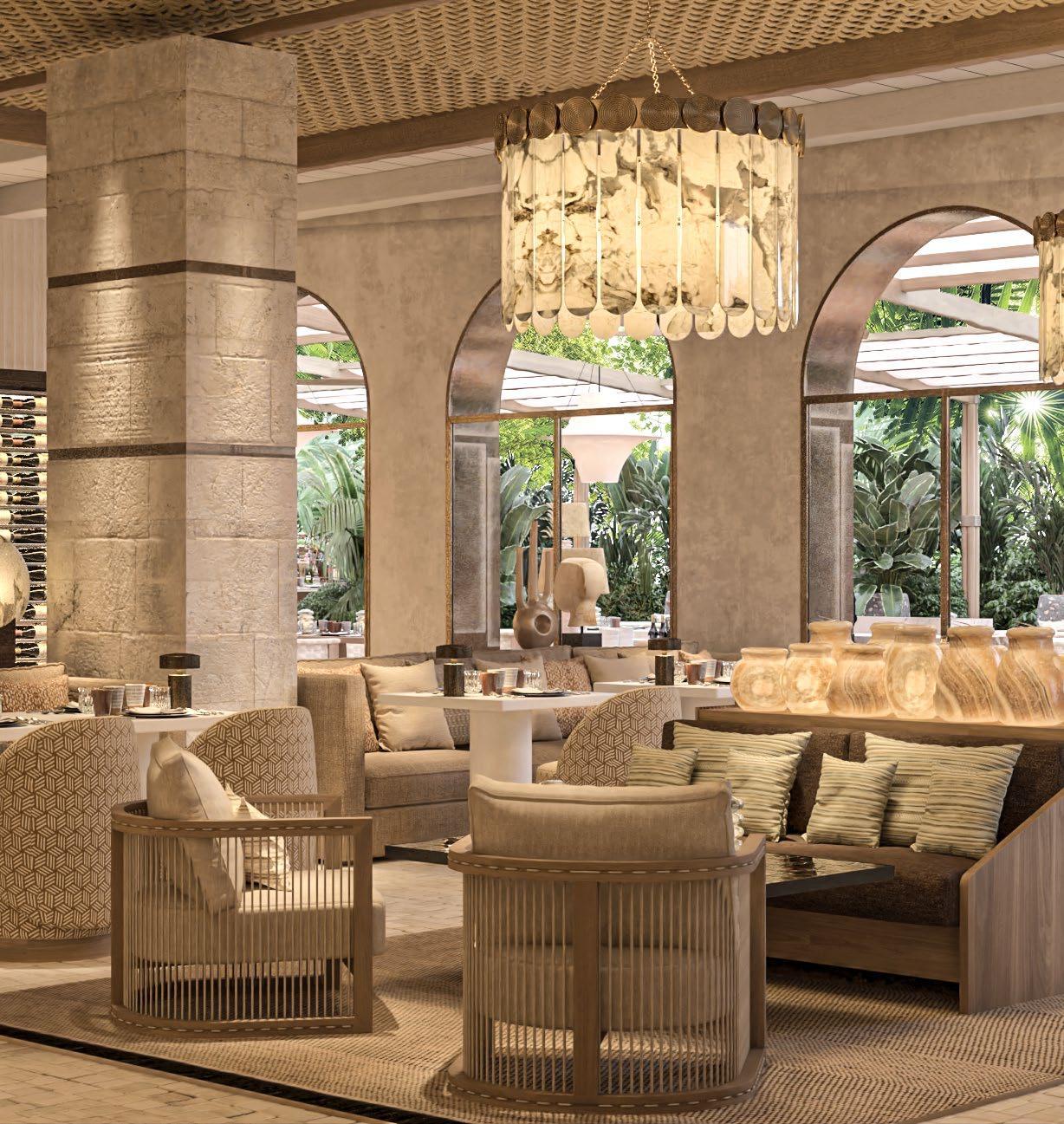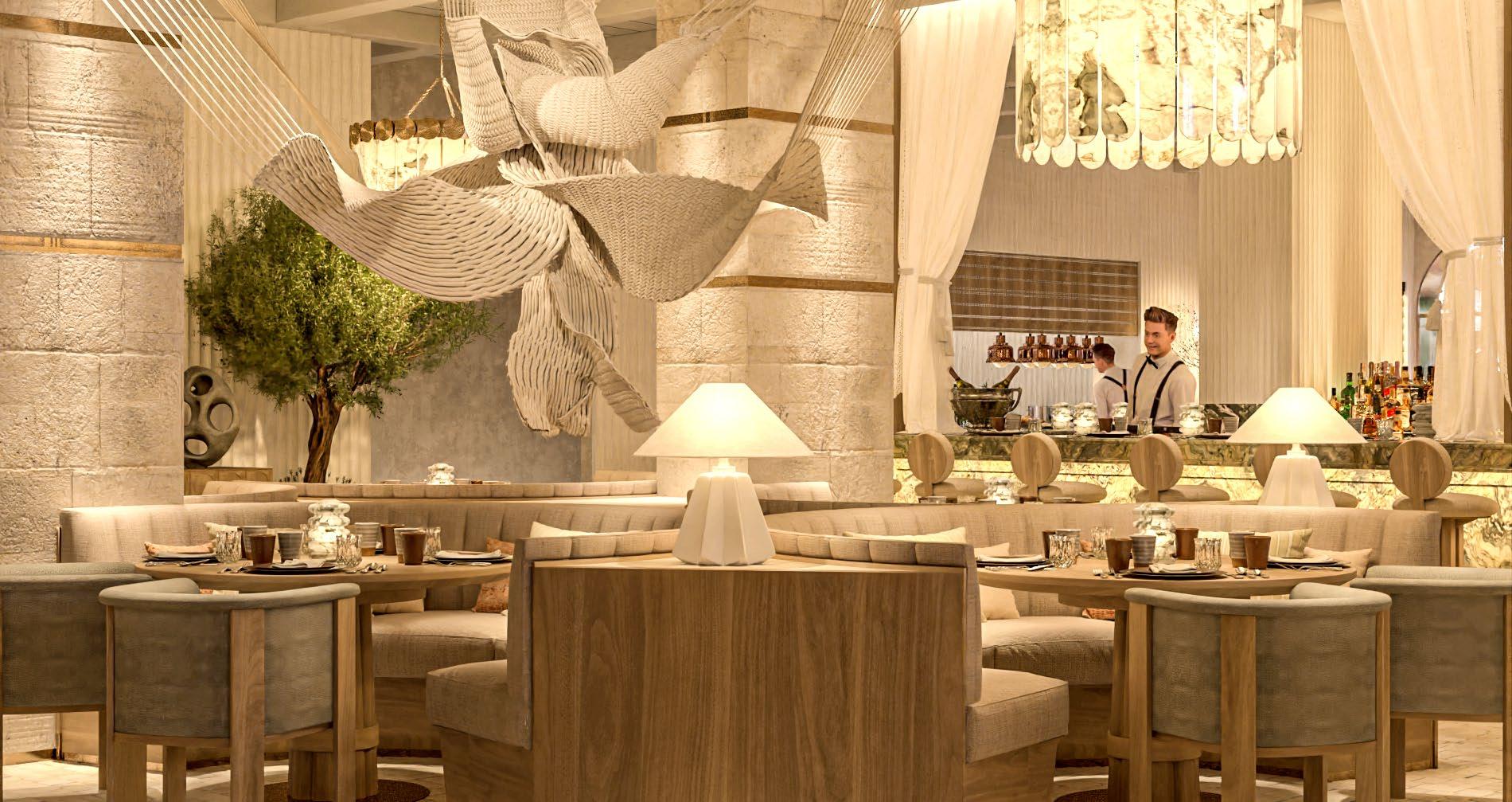 Step into our Main Dining Room, a 3,425 sq/ft sanctuary where Mediterranean serenity meets Miami sophistication. Inspired by the minimalism of the Greek isles and enriched by the vibrant energy of Coconut Grove, the space blends natural textures, sun-washed tones, and architectural elegance to create a refined, inviting atmosphere. Custom finishes, sculptural walls, and softly glowing alabaster lighting evoke timeless warmth, while an open kitchen and monolithic marble bar add a sense of connection and celebration. With seating for 122, the Main Dining Room offers a stunning setting where every gathering becomes unforgettable.