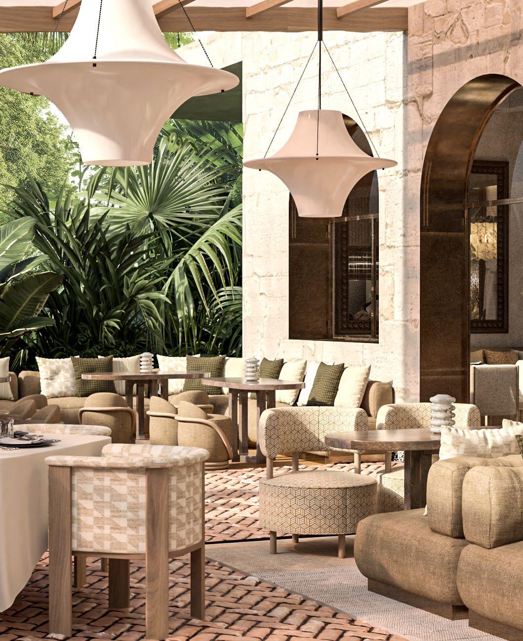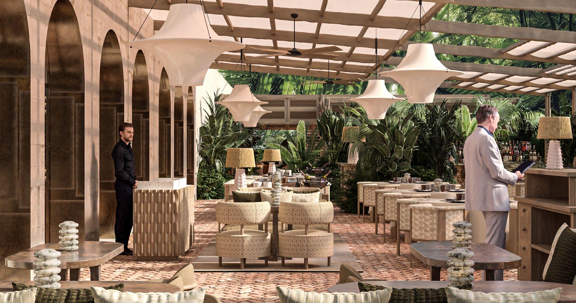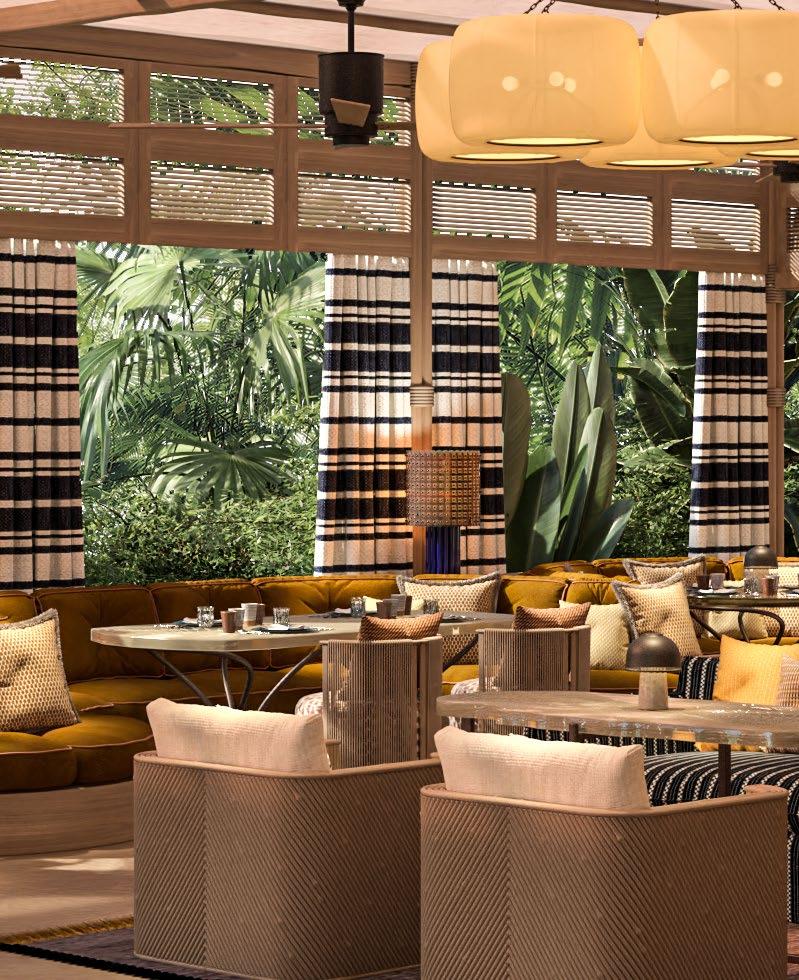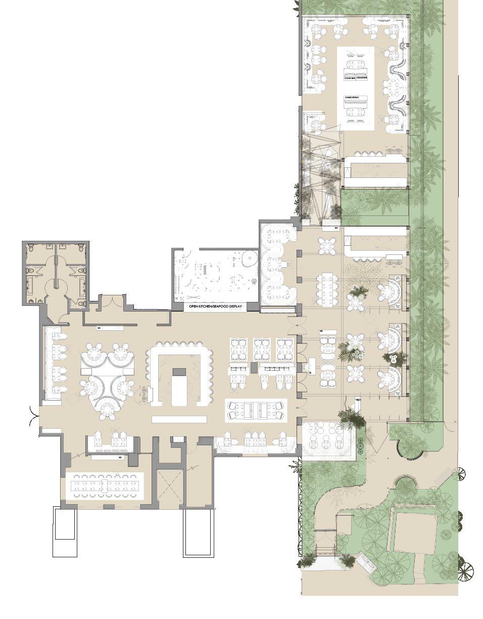 Step into our Main Dining Room, a 3,425 sq/ft sanctuary where Mediterranean serenity meets Miami sophistication. Inspired by the minimalism of the Greek isles and enriched by the vibrant energy of Coconut Grove, the space blends natural textures, sun-washed tones, and architectural elegance to create a refined, inviting atmosphere. Custom finishes, sculptural walls, and softly glowing alabaster lighting evoke timeless warmth, while an open kitchen and monolithic marble bar add a sense of connection and celebration. With seating for 122, the Main Dining Room offers a stunning setting where every gathering becomes unforgettable.