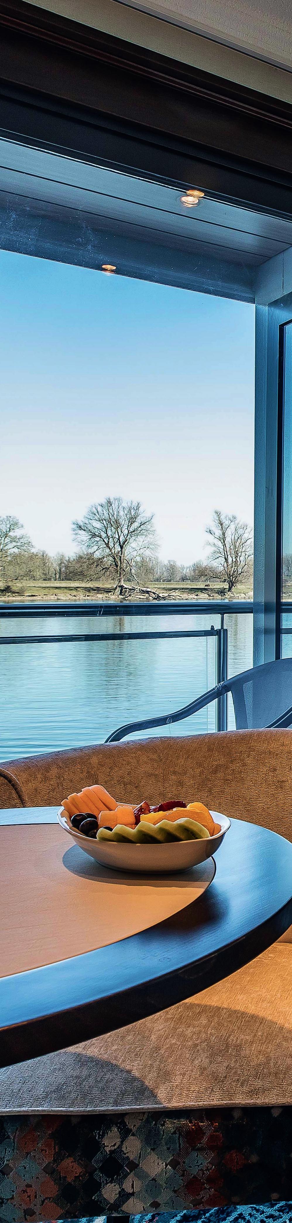 Choose an Upper and Middle deck suite for floor-to-ceiling French windows that flood your space with light. Balcony suites o er a private spot to watch Europe drift by – perfect for quiet morning co ee or sunset drinks.
