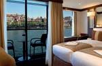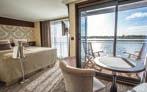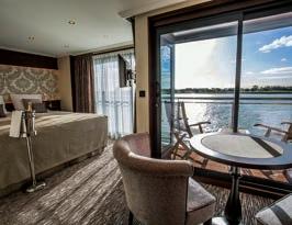 Douro Splendour Deluxe Balcony Suites and Superior Balcony Suites feature floor-toceiling windows, sliding doors extend onto a private balcony with table and chairs.
