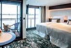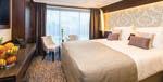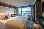 Deluxe Suites on the Diamond Deck, are 50% larger than Standard Cabins, beautifully appointed and feature sliding floor-to-ceiling glass doors.
