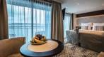 Exquisite design and a generous seating area with two chairs makes your chic cabin a stylish home from home. Hotel-style beds can be configured as double or twin and spacious marble bathrooms feature a fully glazed shower. All cabins and suites feature air conditioning, hairdryer, safe, flat screen TV, minibar, telephone, complimentary bathrobes and slippers and tea and coffeemaking facilities.