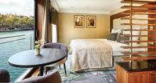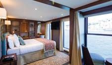Stay in a luxurious suite or cabin with beautifully appointed en suite bathrooms and river views.
