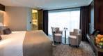 Deluxe Suites have a walk-in wardrobe, larger living area and bathroom with twin wash basins and separate WC section. Superior Suites have a larger living area with table and chairs, spacious bathroom and separate WC section.