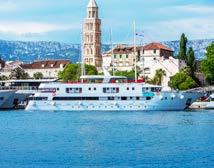 The guest list on board is small, with a maximum of just 38 guests and a guestto-crew ratio of 4:1, you’re guaranteed exceptional service and an intimate experience. The yacht’s size also allows our captains to moor at the smaller ports, so you can hop off and explore right away. Relax on the sun deck with your favourite book (and a cocktail). We’ll drop anchor in idyllic bays so you can cool down with a refreshing dip in the aquamarine water.
