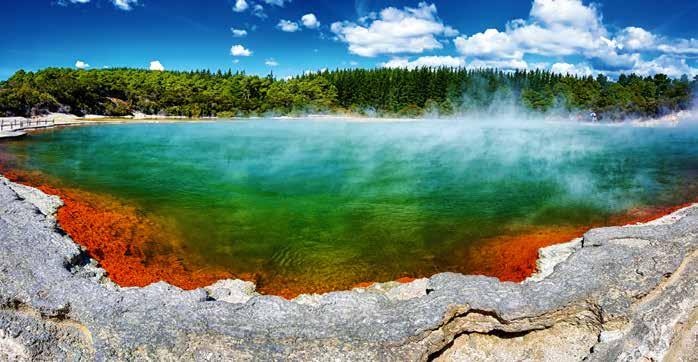 boat trip on the deep fjord Thermal pool in Waiotapu, Rotorua waters between sheer granite cliffs rising thousands of feet, affords wonderful views of mile-high Mitre Peak and the 500-foot Stirling Falls. There is a good chance of seeing dolphins, fur seals or penguins during our trip before we’ll return to the charming small lakeside resort of Te Anau. A packed lunch is included today. (B,L) Included Experience – Cruise around Milford Sound