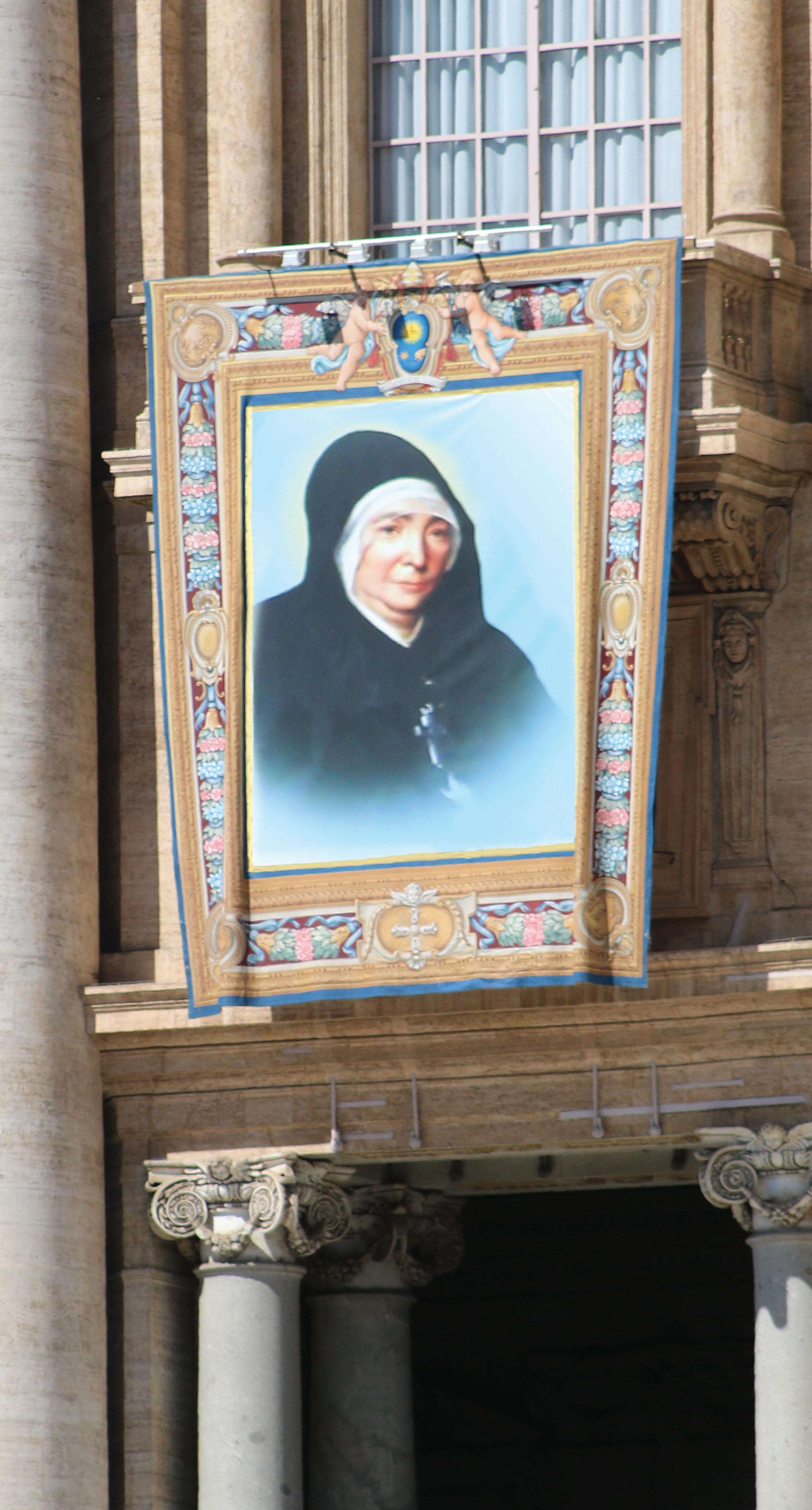 A banner with an image of Saint Marie Rivier was displayed at Saint Peter’s Basilica in Vatican City, site of the May 15 Canonization Mass.