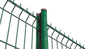 Els panells Doble Fil de farciment de la barana es fixen als postes verticals amb abraçadores metàl · liques.