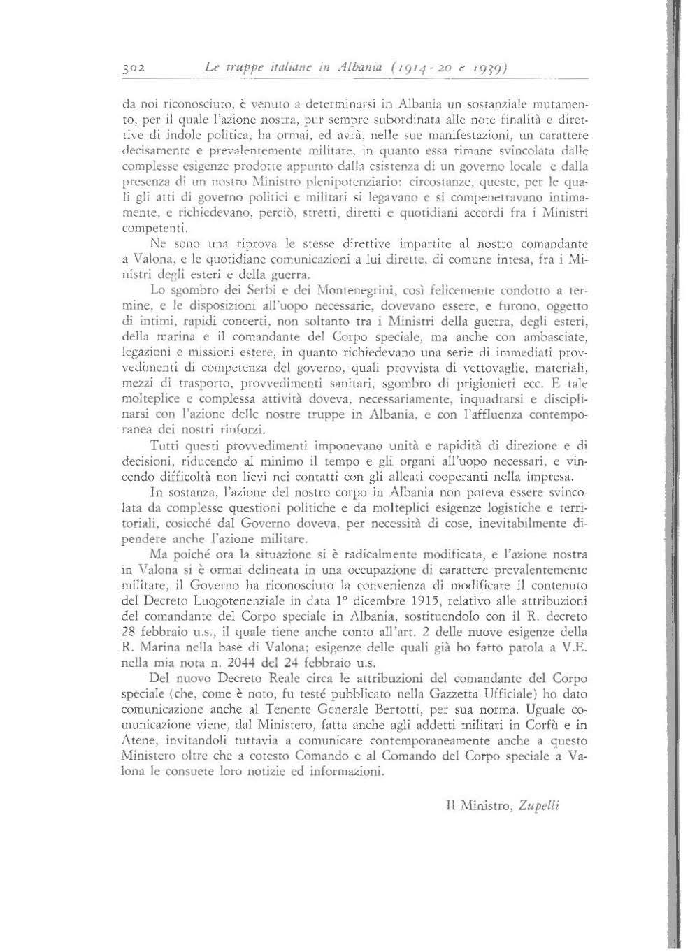 22. F. 1623 RR.P. data 4.3.1916 del Comando Supremo: «Circa la rutela di Valona »