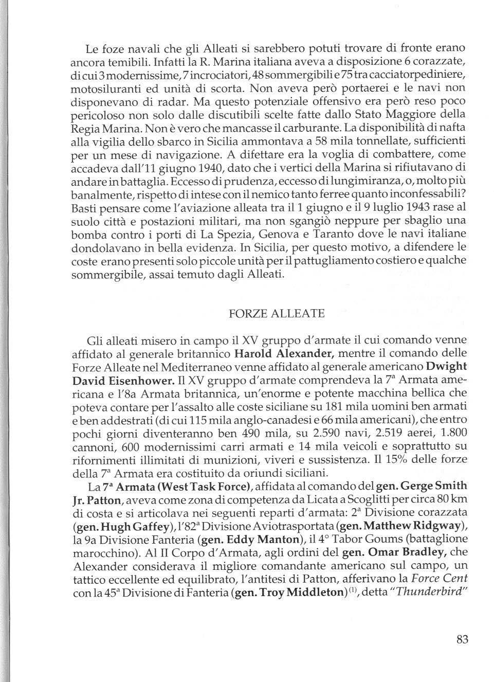 Il compito di invadere la Sicilia fu affidato al XV gruppo d'armate il cui comando venne assegnato al generale britannico Harold Alexander, mentre il comando delle Forze Alleate nel Mediterraneo fu assegnato al generale americano Dwigth David Eisenhower. Il XV gruppo comprendeva la 7 a Armata americana, al comando del gen. George SmithJ r . Patton, e la gaArmata britannica, al comando del gen. Bernard Law Montgomery.
