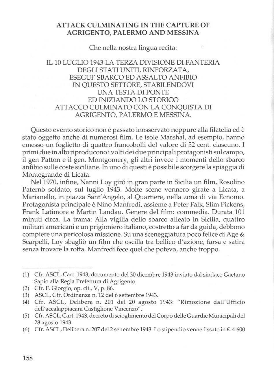 La nuova fatica del prof. Calogero Carità, per l' appunto1 ci descrive con immediatezza proprio i fatti collegati alla grande operazione anfibia dell'es tate del '43 e incentra l'attenzione, sin dai primi capitoli, sulle vicende che hanno coinvolto la bellissima cittadina rivierasca di Licata, sua città d'origine, la q u a le ebbe la particolare ventura di essere il primo com une siciliano, e quindi italiano, ad essere liberato dall'arrivo degli americani e da loro amministrato nei primi difficilissimi mesi successivi alla conclusione delle operazioni militari.