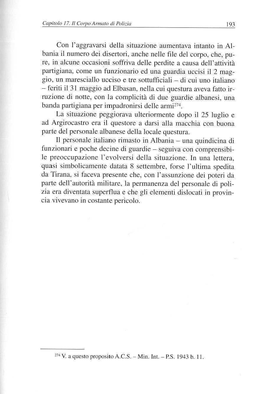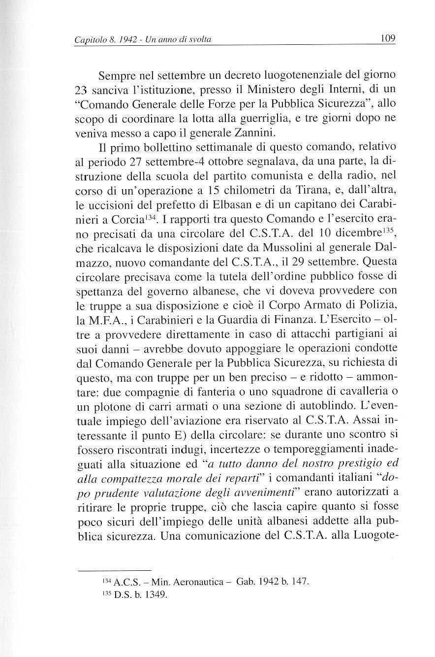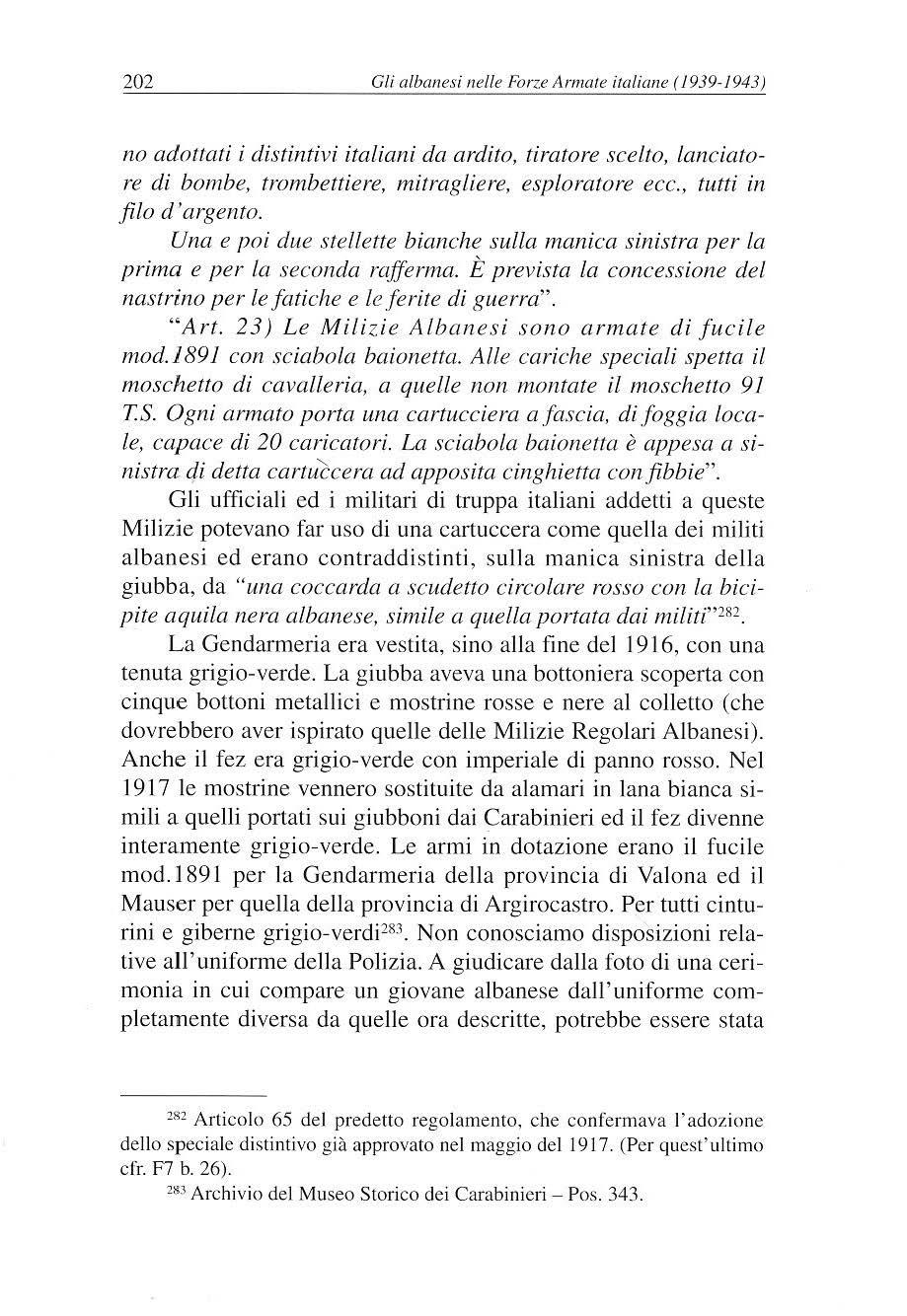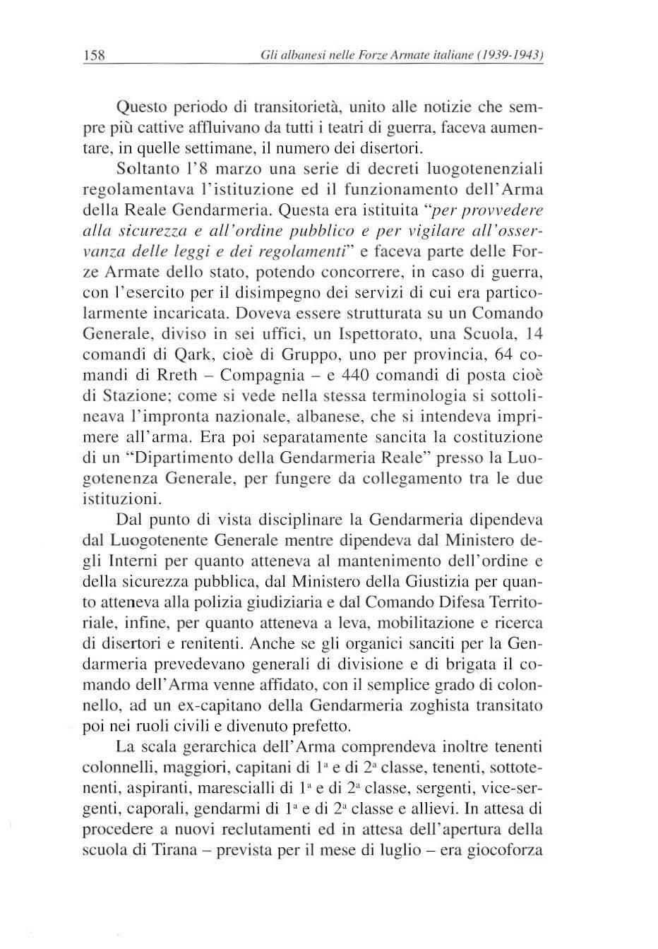 Negli stessi anni l'arma dei Carabinieri Reali - cui spettava il non fac ile compito cli tutelare la pubblica sicurezza nell'Albani a in guerra - aveva ordinato, addestrato ed impiegato elementi albanesi come agenti di po li zia e come gendarmi. 8 E.3-b. 125.