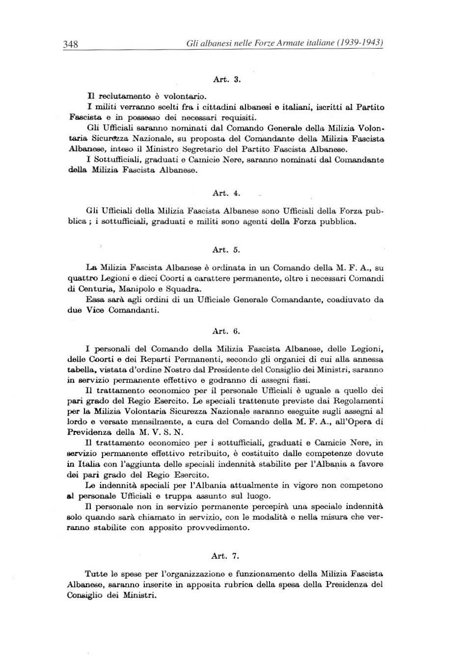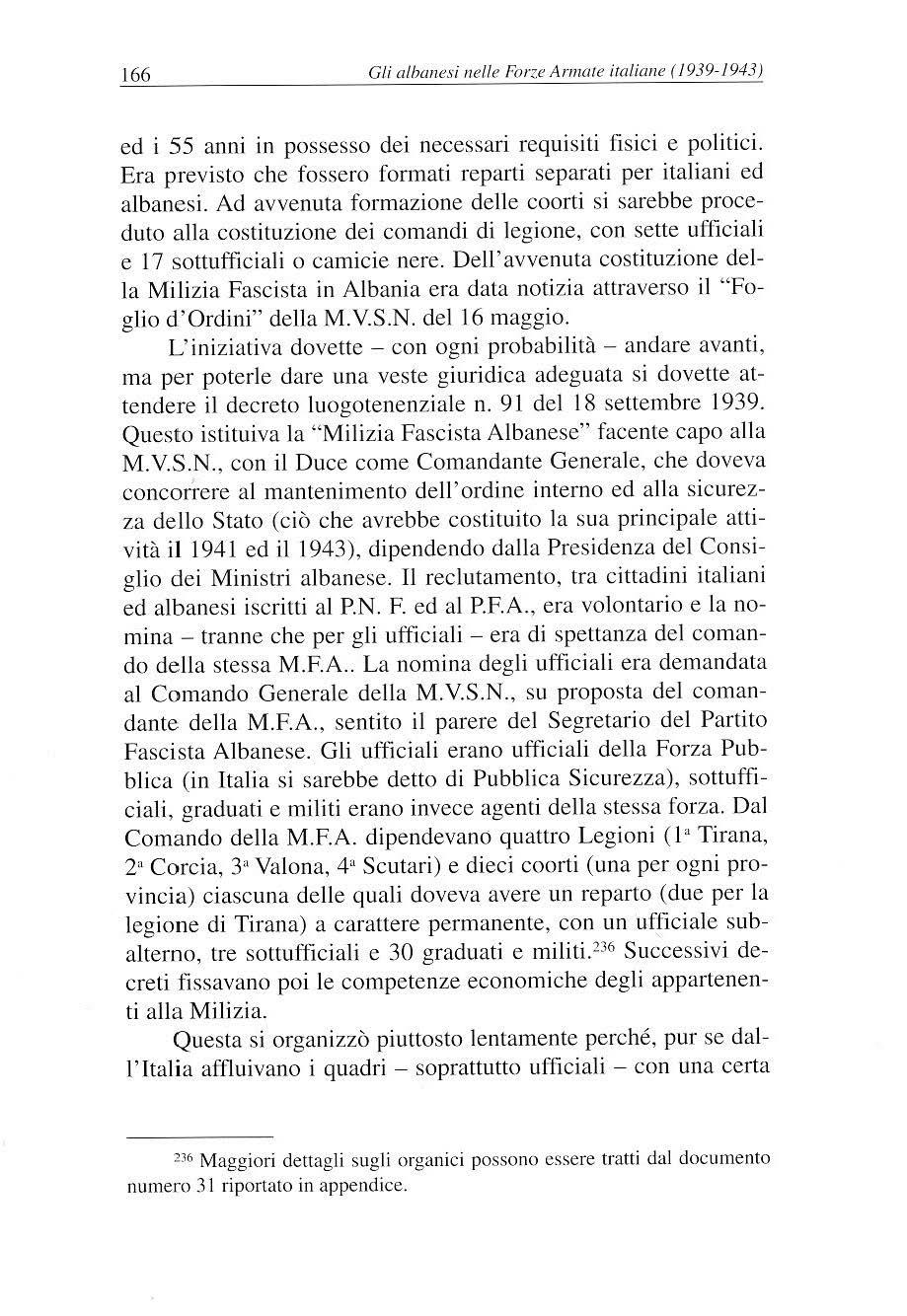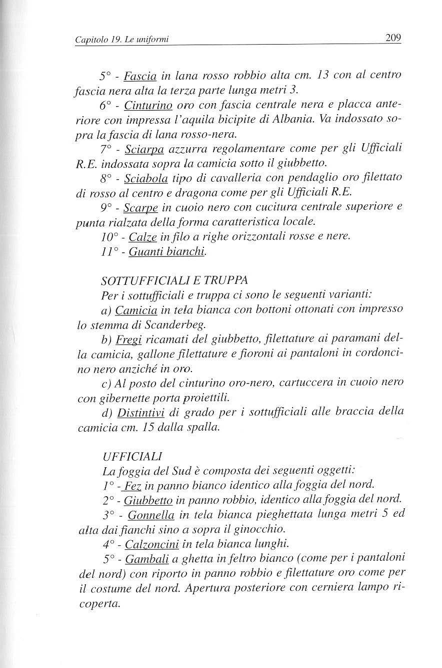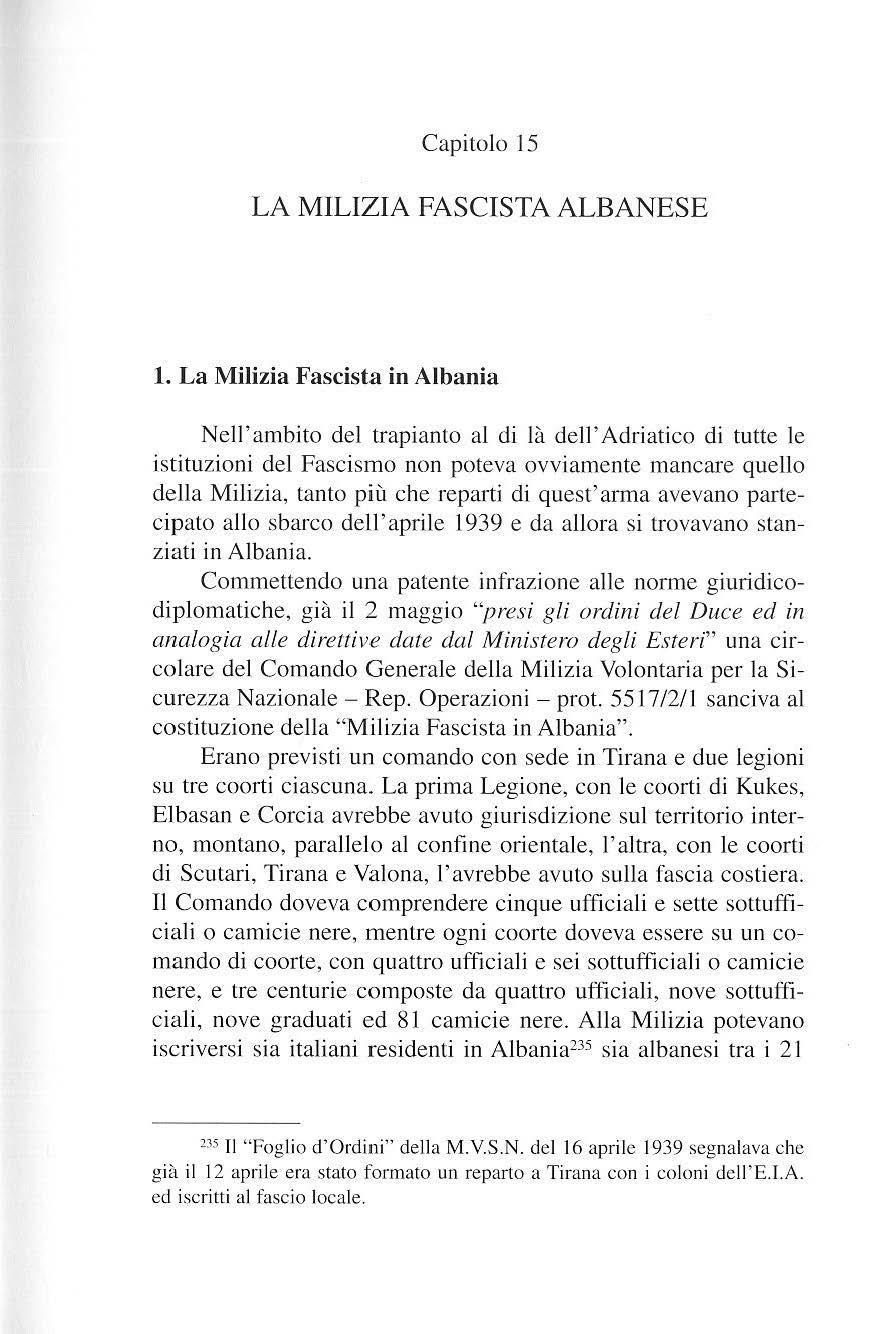 Il volume è stato suddiviso in due parti: la prima dedicata alla storia ed all'evoluzione delle unità albanesi all'interno delle Forze Armate italiane e la seconda dedicata a corpi ed armi speciali che meritavano una tratta zione a parte , per le mansioni loro attribu ite o per le loro peculiarità nonch é alle un(fonni.